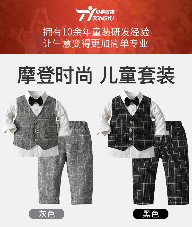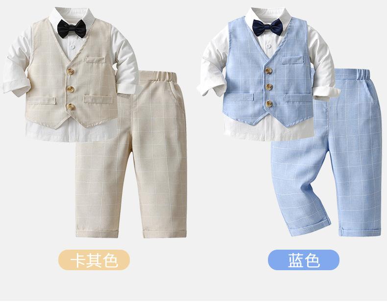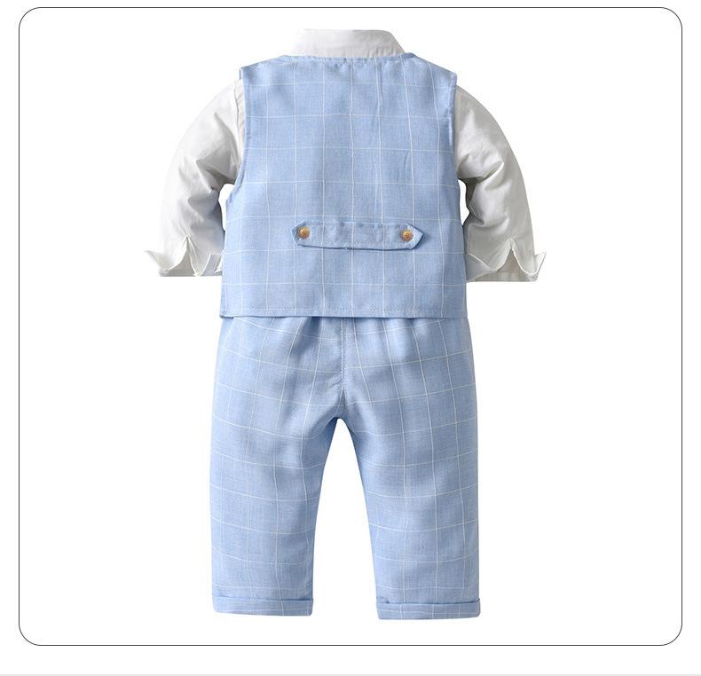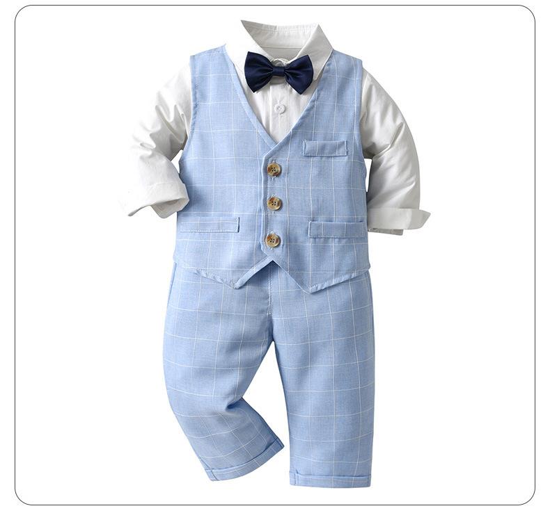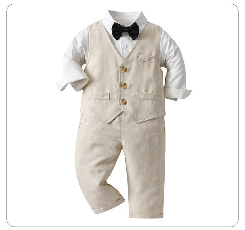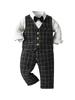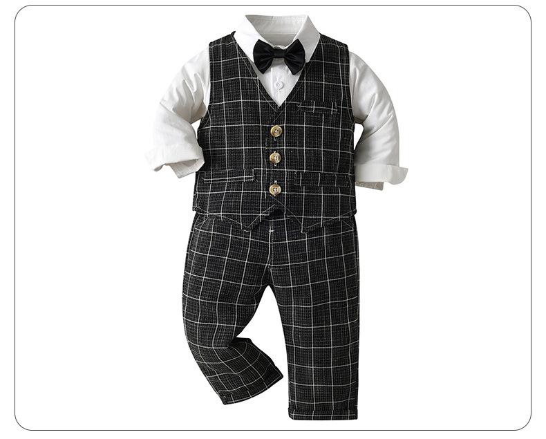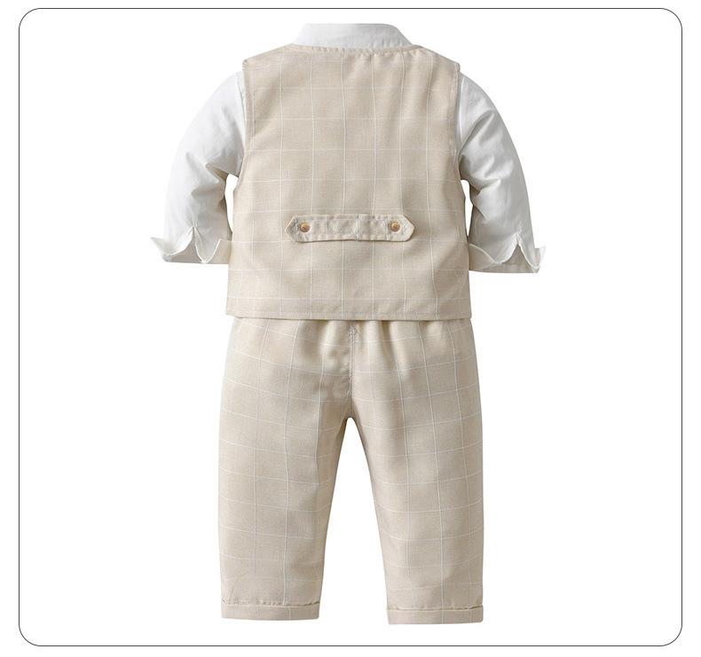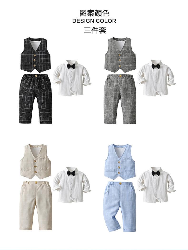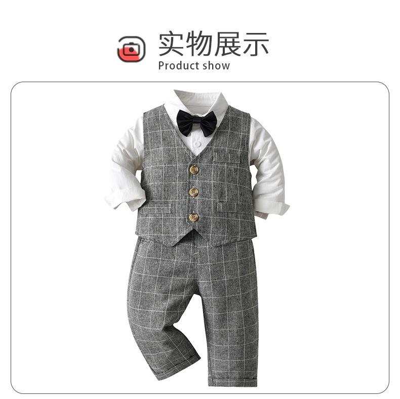 Atacado de Roupas Infantis de Comércio Exterior Conjunto de Três Peças Xadrez de Cavalheiro Britânico Roupas Infantis Bebê Primavera e Outono Manga Longa Terno para Meninos Tamanhos 80-90-100-110-120-130