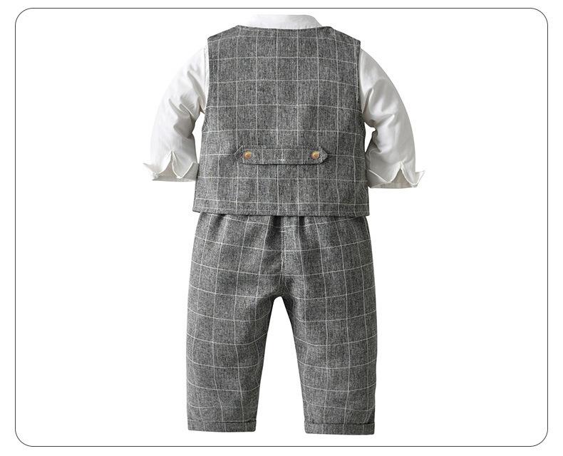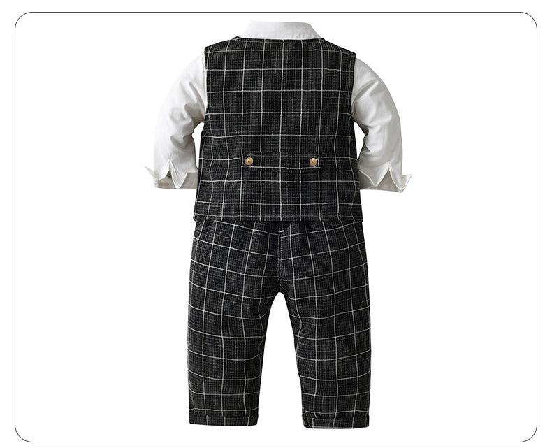 Atacado de Roupas Infantis de Comércio Exterior Conjunto de Três Peças Xadrez de Cavalheiro Britânico Roupas Infantis Bebê Primavera e Outono Manga Longa Terno de Menino