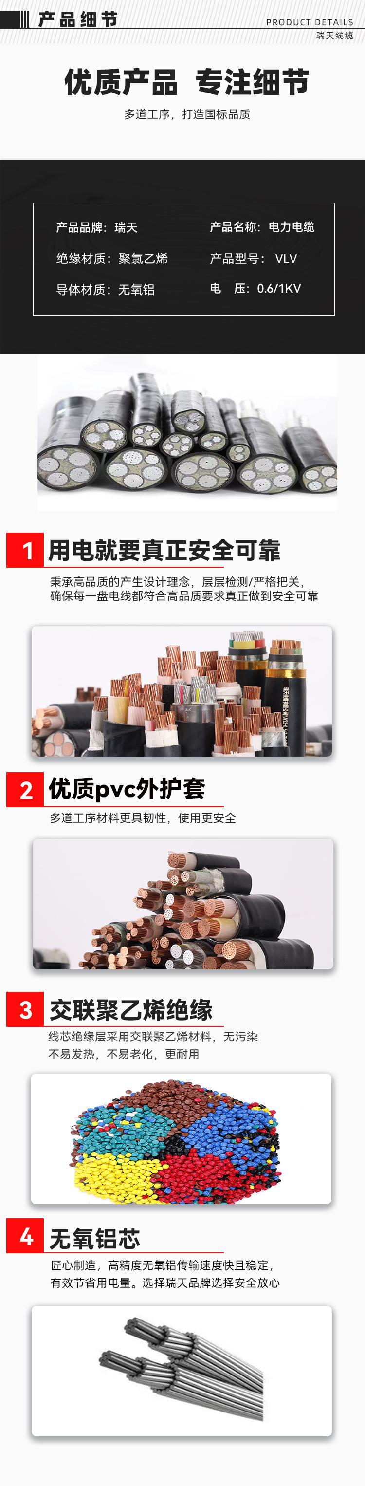 Cabo de Alumínio com Núcleo de Alumínio Padrão Nacional Yjlv Cabo Externo Antienvelhecimento Fio de Alumínio Trifásico Quatro Fios Vlv Fabricante de Cabo de Alimentação com Núcleo de Alumínio