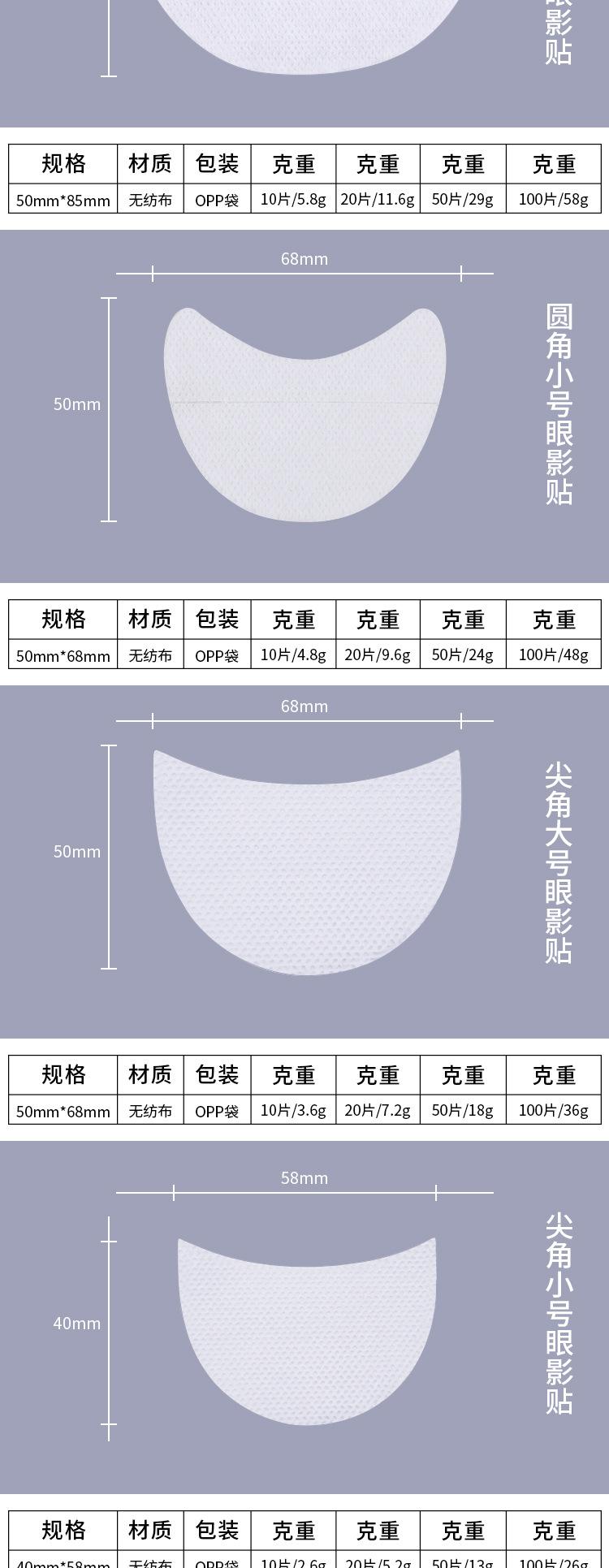 50 pieces Small size rounded corner eye shadow stickers opp bags
