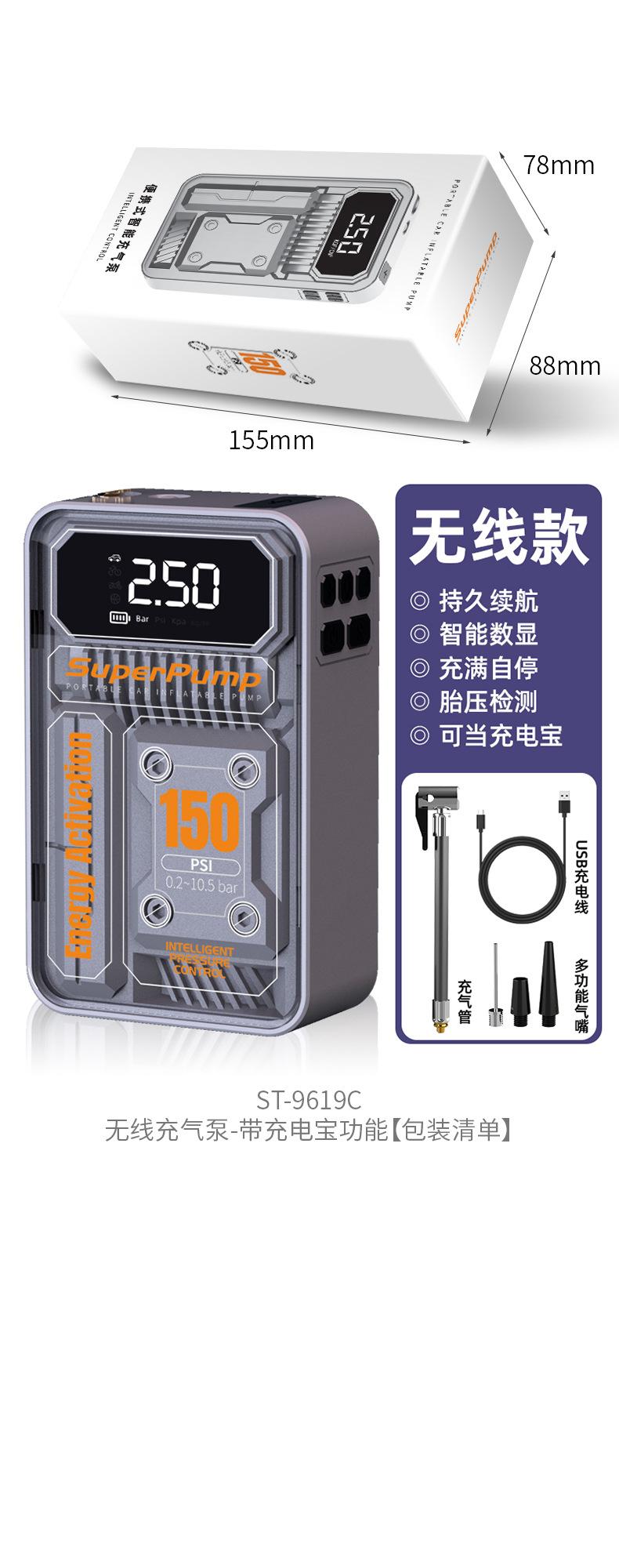 【ST-9619C Anfitrião sem fio*1, mangueira inflável*1, boca inflável3definir,Tipo-CCabo de carregamento, manual*1, caixa de Cores*1