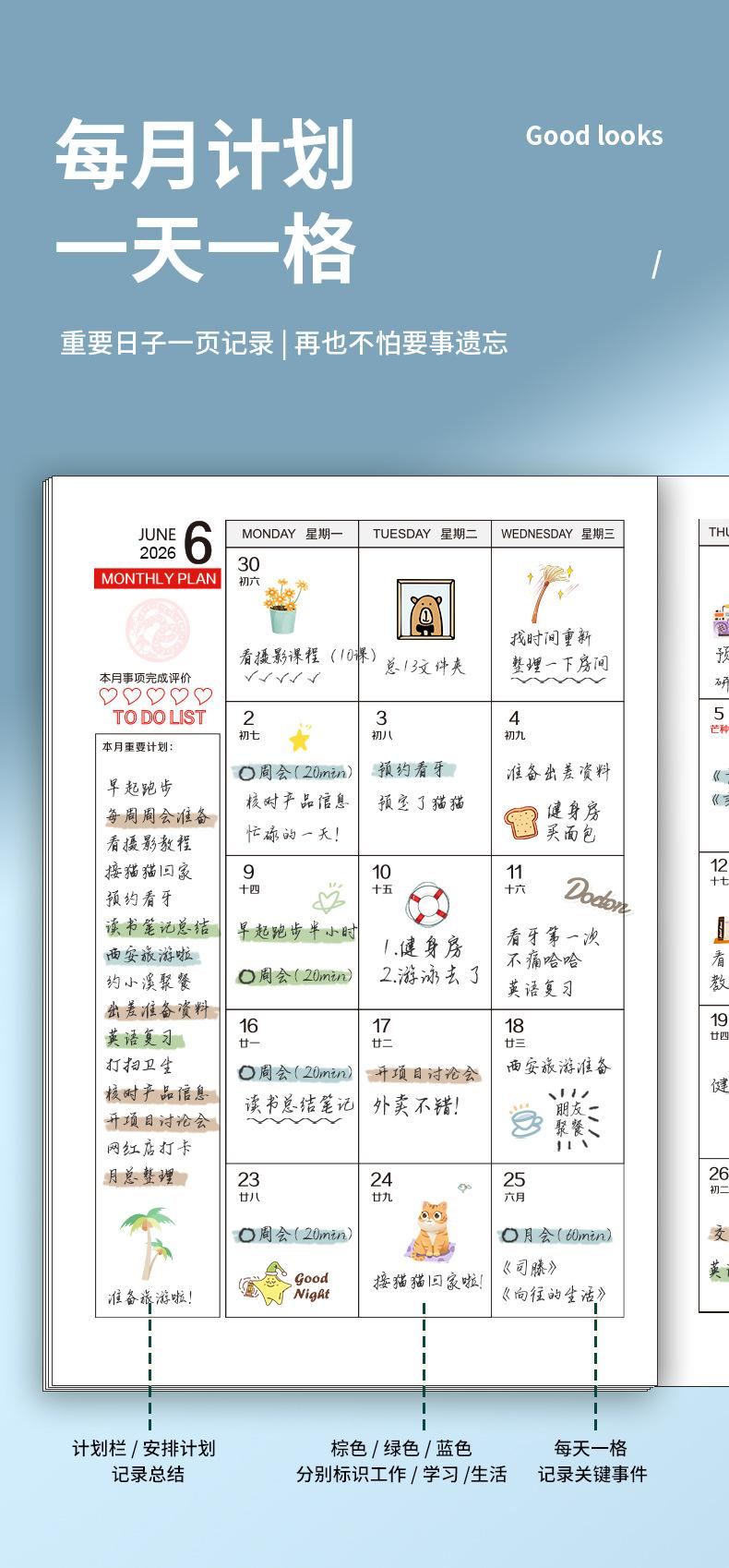 Planner 2026 A5 Agenda Calendário Página Diária Caderno A6 Manual Logotipo Personalizado Hot Stamping