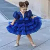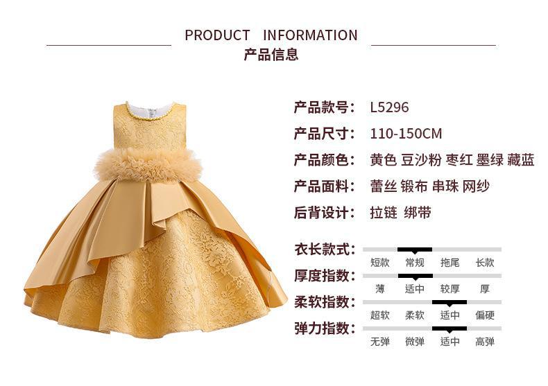 Europeu e americano meninas vestido fofo tule vestido de princesa crianças piano desempenho vestido flor menina renda vestido de casamento saia
