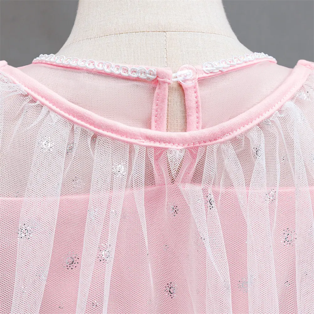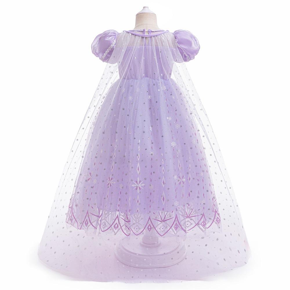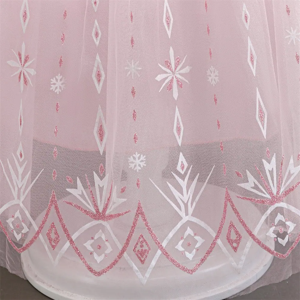 Vestido de princesa Frozen Elsa Elsa Elsa Princess Girl vestido de manga curta com capa de malha vestido removível