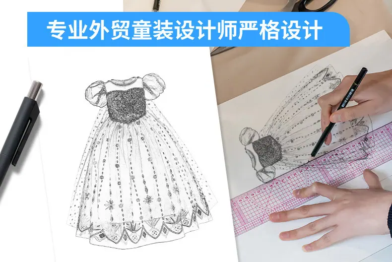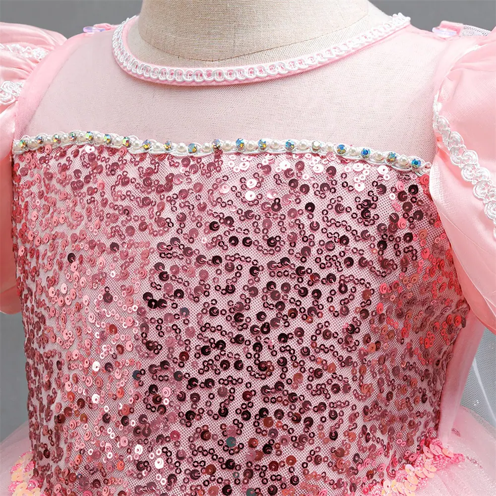 Ins vestido de princesa frozen, vestido de lantejoulas, saia elsa, traje de performance para o dia das crianças, saia inchada, vestido de manga bufante
