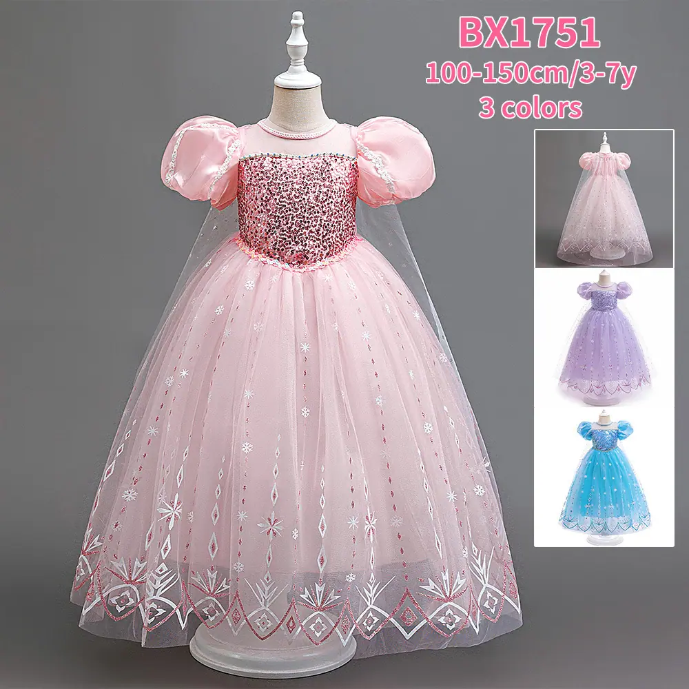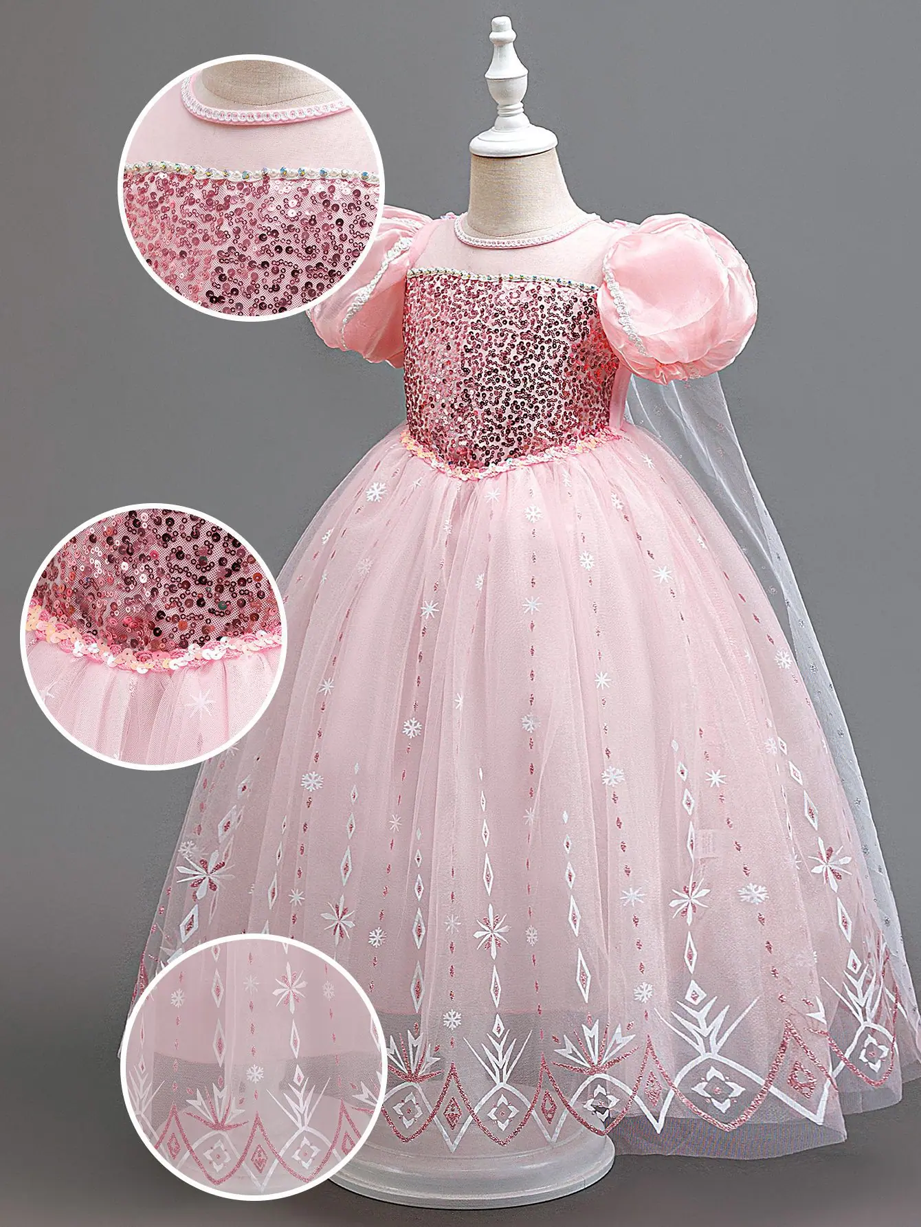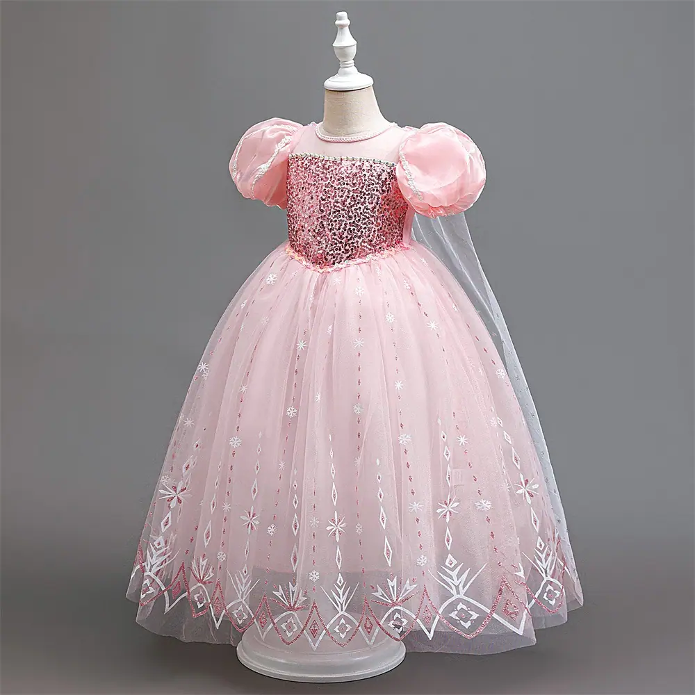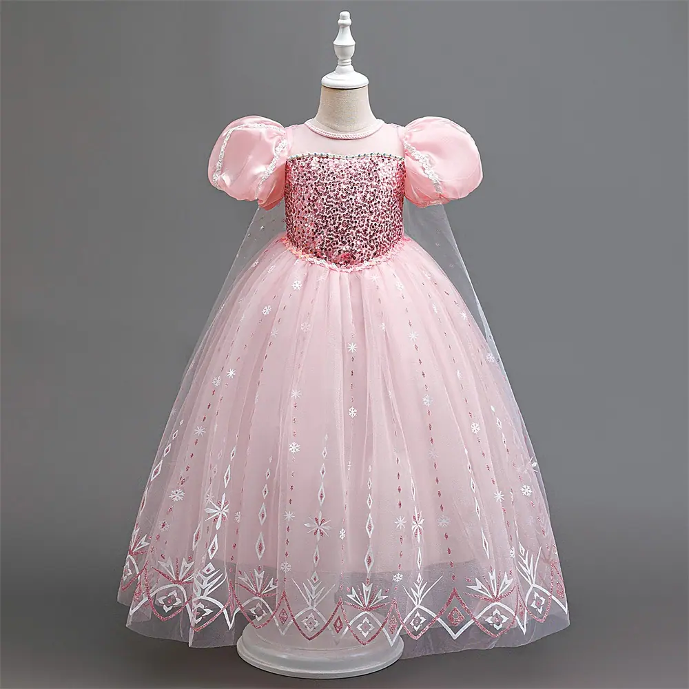 Frozen Elsa vestido de princesa infantil vestido de lantejoulas Elsa vestido de floco de neve capa longa vestido cosplay