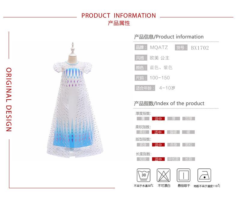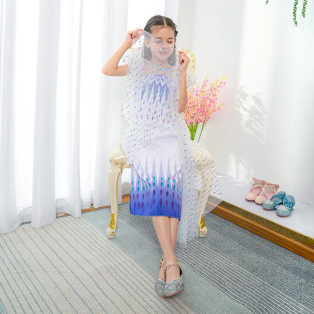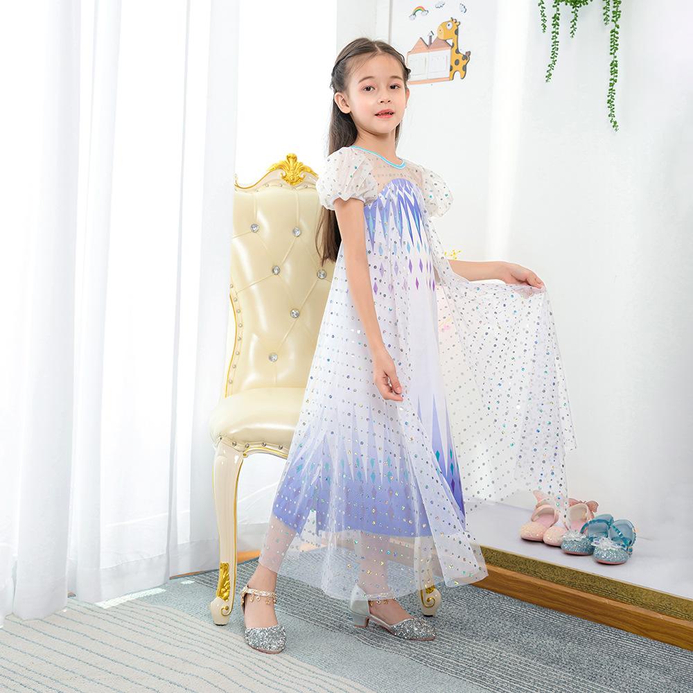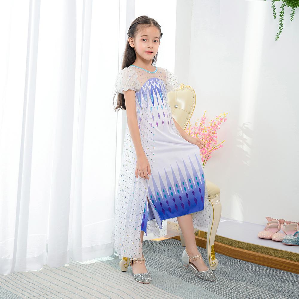Frozen 2 Vestido de Princesa Elsa Vestido Tutu de Malha com Lantejoulas Azuis Elsa Vestido de Performance Pequena Princesa