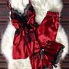 Pijama feminino de seda, novo, primavera e verão, shorts, roupa de casa, terno com bojo, pijama coreano macio