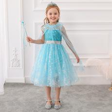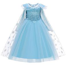 Vestido de princesa Elsa com estampa de malha, capa longa, vestido de princesa, cosplay, lantejoulas, vestido de performance Frozen