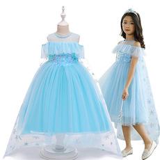 ins popular Cosplay Frozen princesa vestido Elsa capa vestido menina malha lantejoulas flor menina vestido