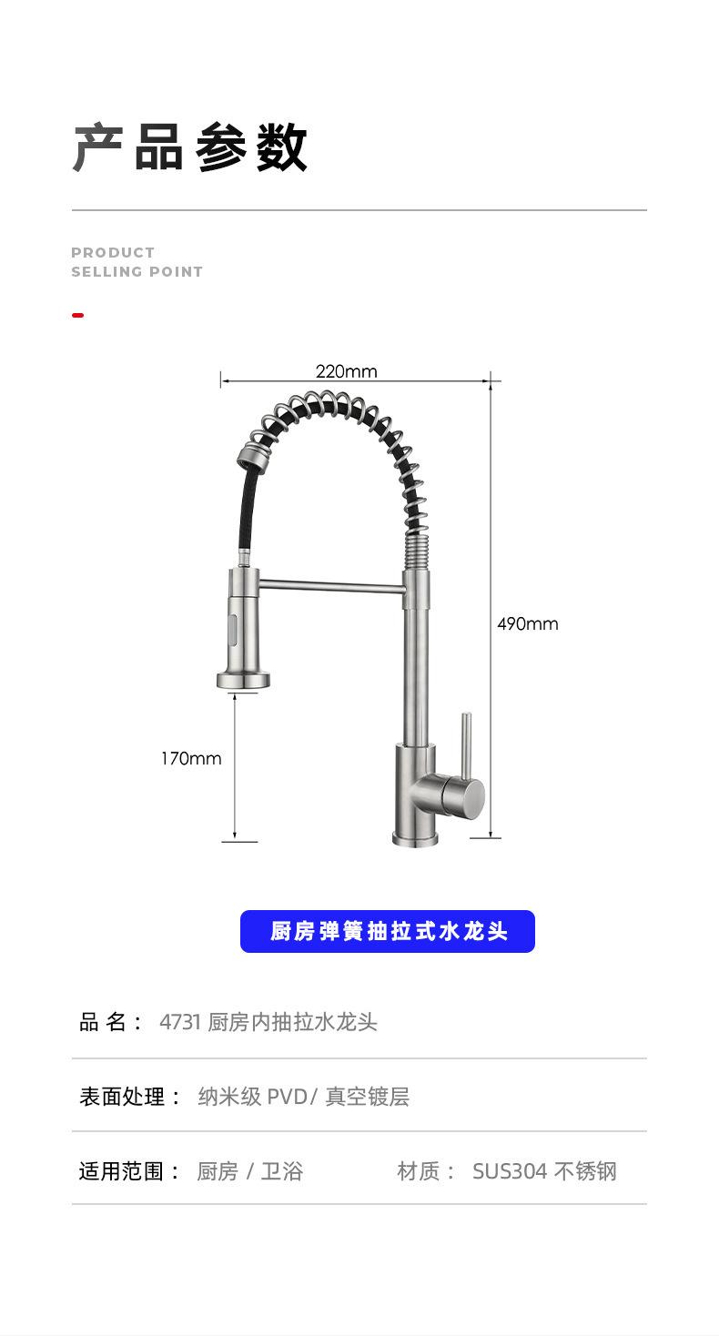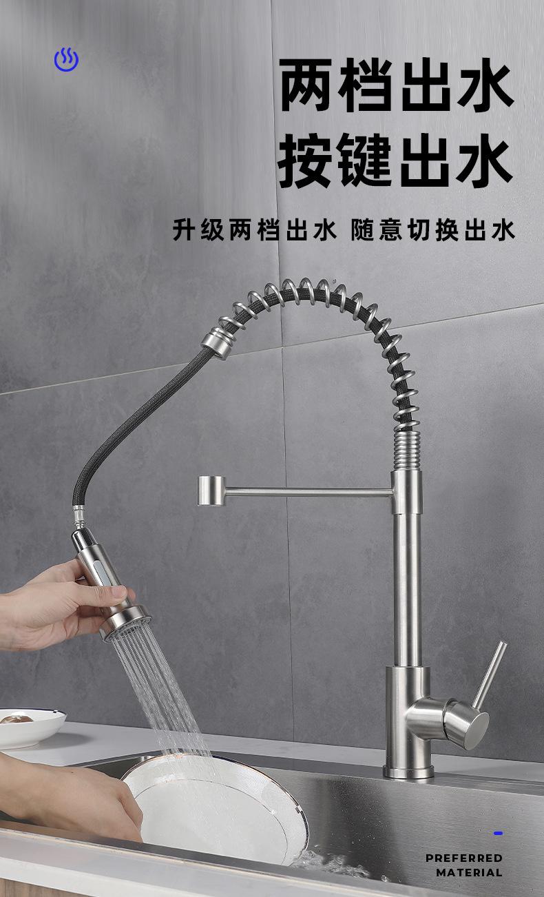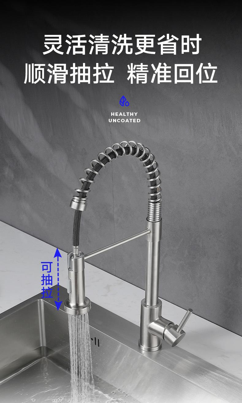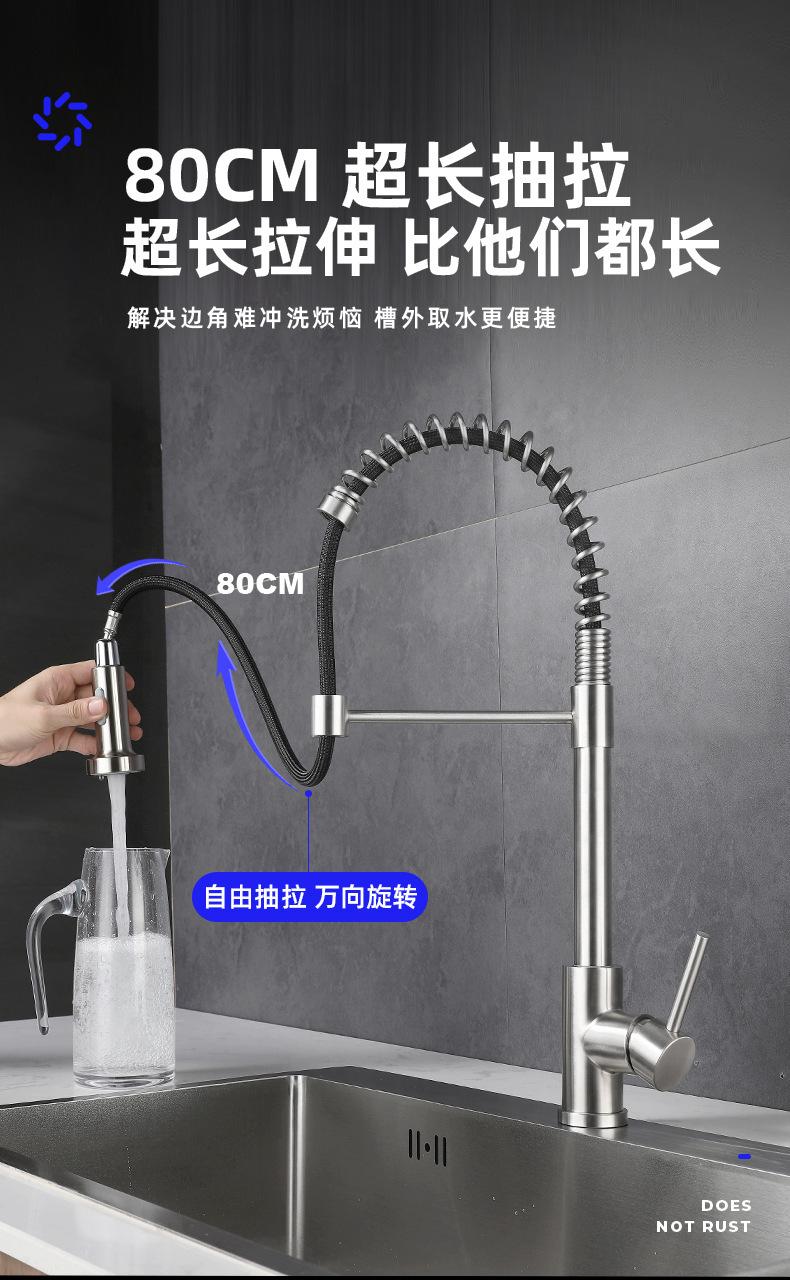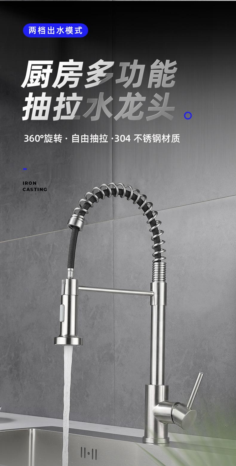 Comércio exterior transfronteiriço Primavera cozinha torneira lavatório 304 aço inoxidável lavatório torneira puxar pia banheiro