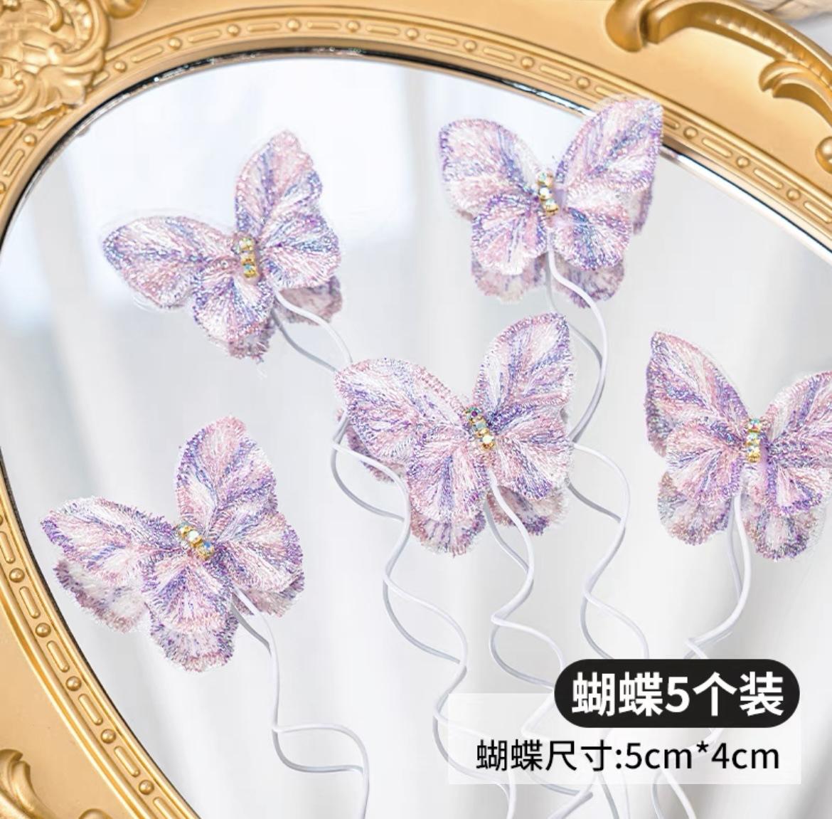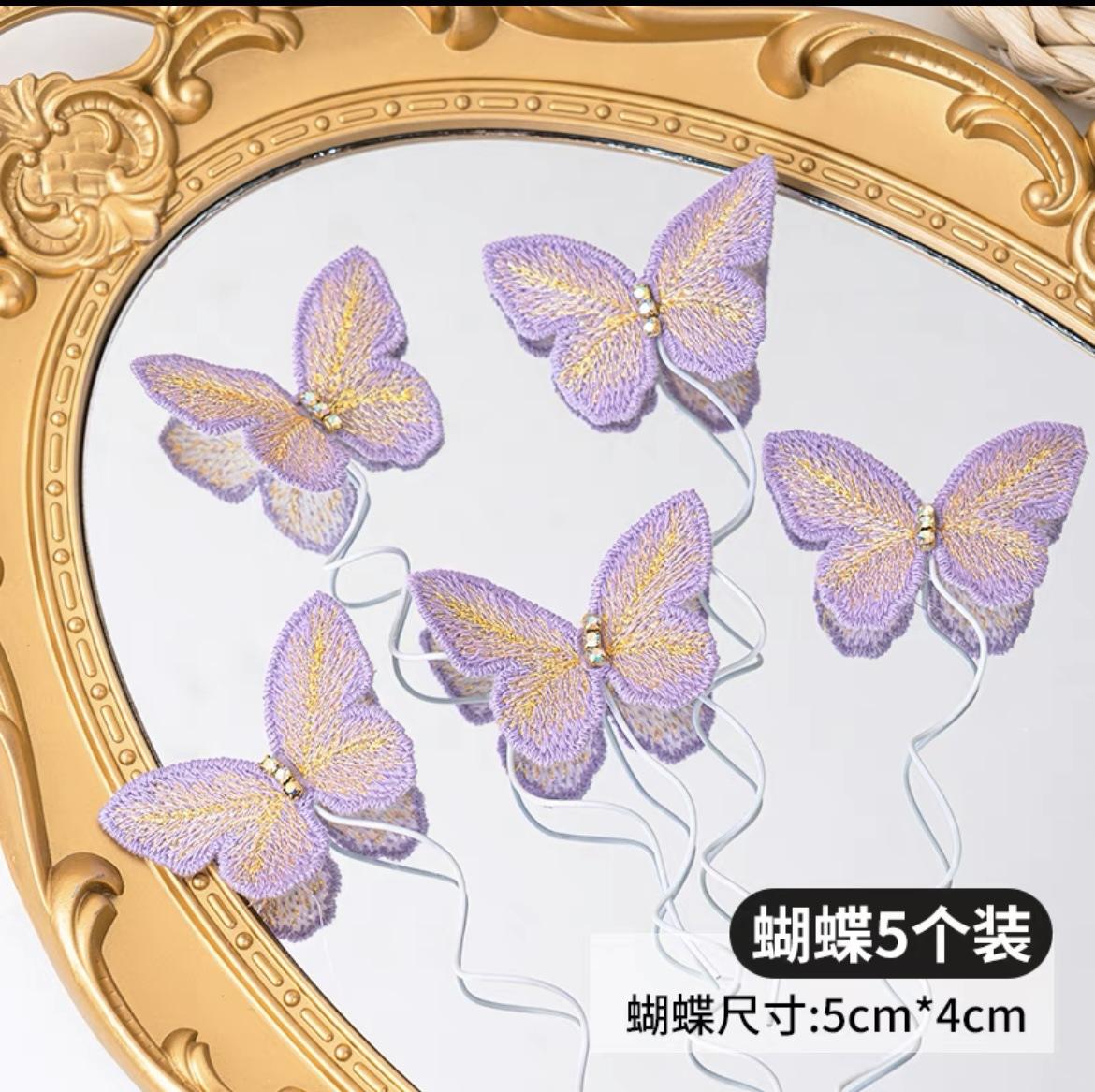 Embroidery Butterfly 5 Pack Purple Yellow, Embroidery Butterfly 5 Pack White, Embroidered butterfly 5 pack dar...