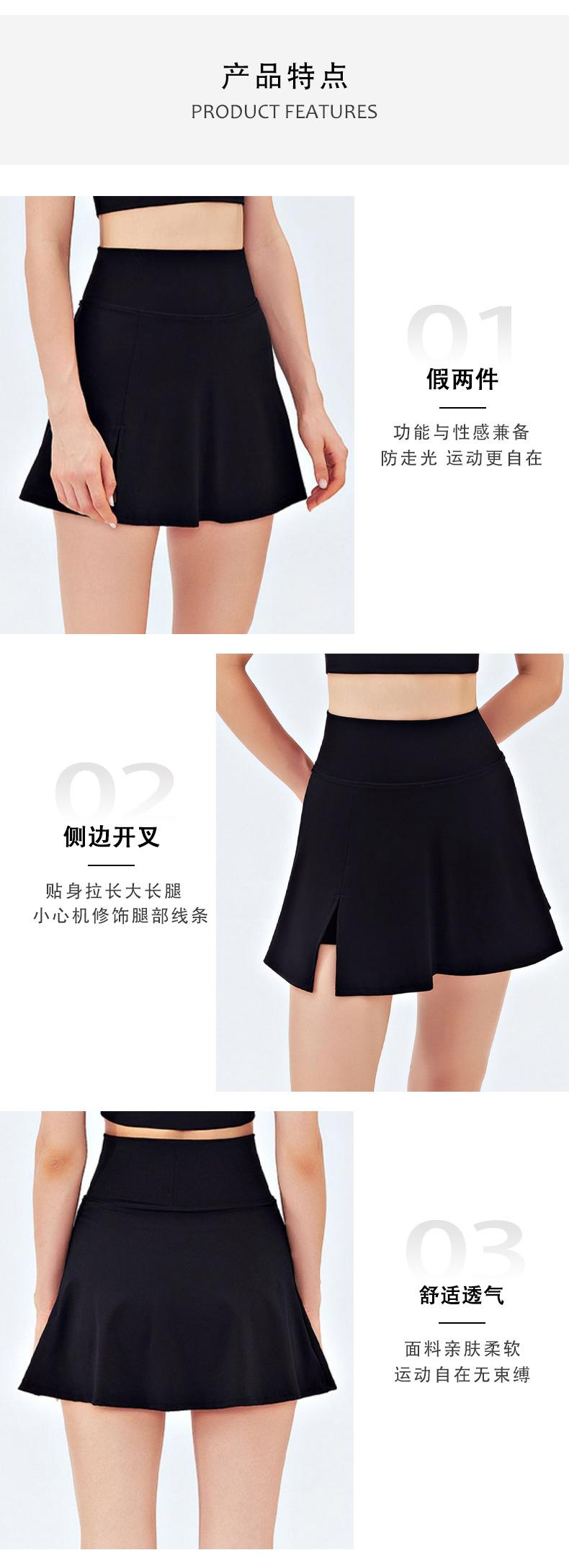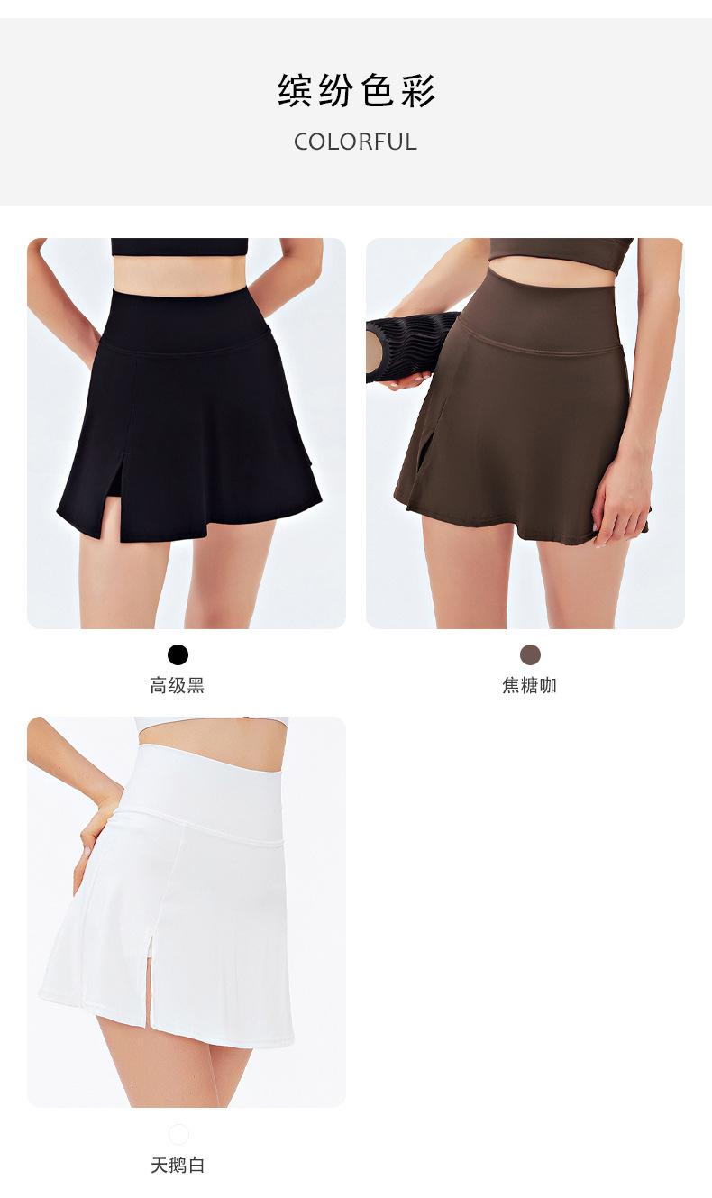 Nova Roupa Yoga Saia Curta Lado Feminino Split Saia Esportiva Fake Duas Peças Anti-Light Fitness Running Training Saia Tênis