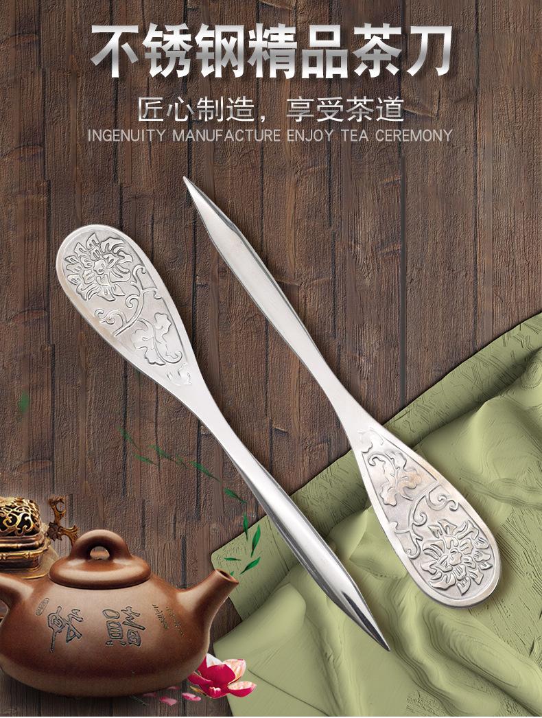 Faca de chá de aço inoxidável Damasco antigo cavalo cerimônia cerimônia pry Chá agulha chá conjunto acessórios Puer chá bolo faca pé-de-cabra kung fu chá
