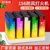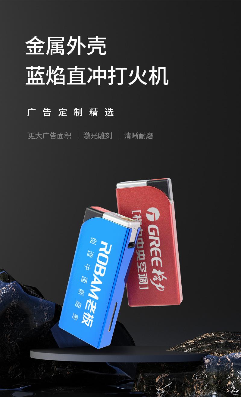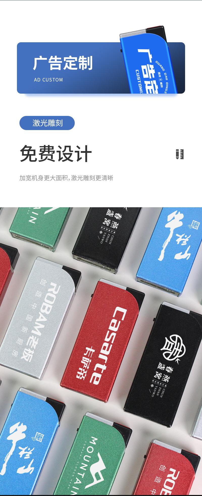 Metal ultra-wide lighter high-end impressão à prova de vento lettering straight blue flame gift lighter laser impressão LOGO
