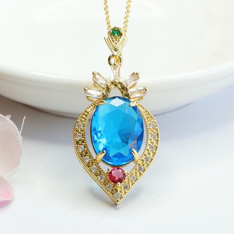 Pingente Coração Oceano Azul Guan Yu Colar Coração Europeu e Americano para Mulheres Item Quente de Transmissão ao Vivo Atacado Dropshipping S3112105