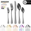 Amazon Aço Inoxidável 1010 Tableware Faca, Garfo e Colher 5 Piece Set Aço Inoxidável Bife Faca, Garfo e Colher Louça Ocidental Venda por atacado