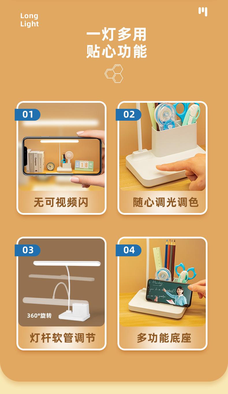 Porta-Canetas LED Lâmpada de Mesa Luz Noturna Proteção para os Olhos Leitura Lâmpada de Cabeceira Estudo Lâmpada de Quarto Mesa de Cabeceira Lâmpada de Mesa Regulável