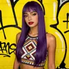 Peruca Roxo Longo Liso Estilo Europeu e Americano para Mulheres, Estilo Influenciador com Franja Lateral, Peruca Completa, Peça Única Atacado