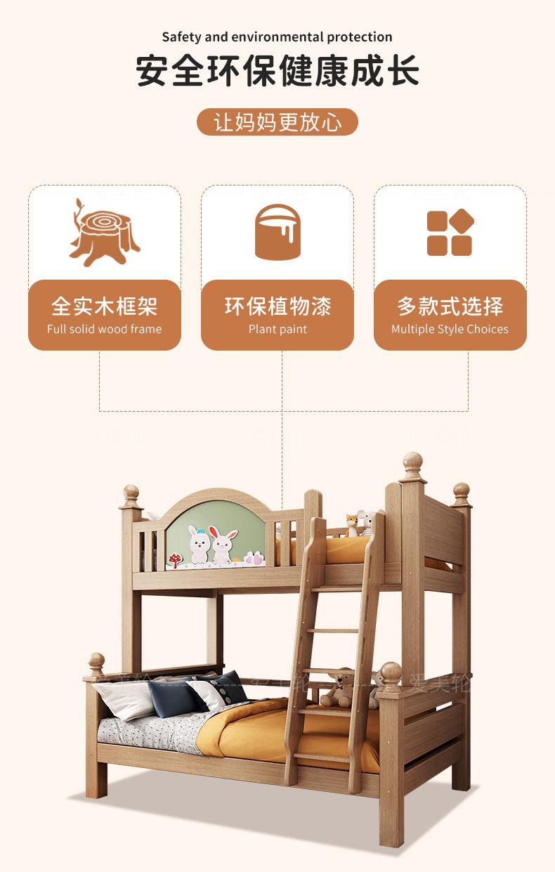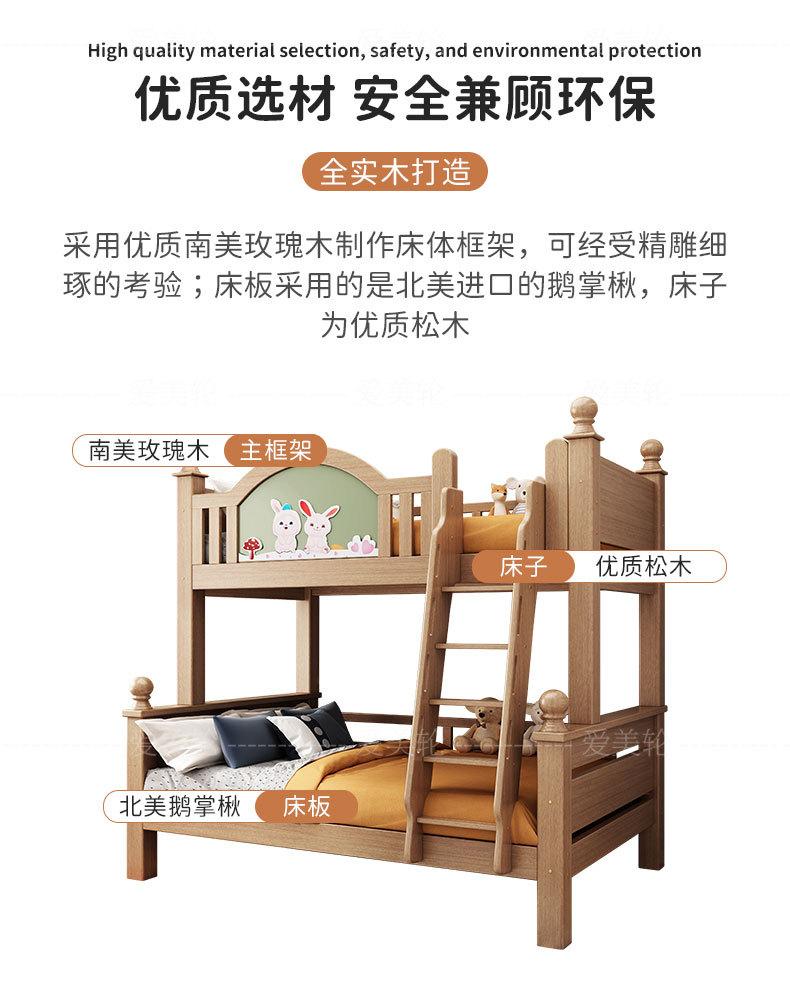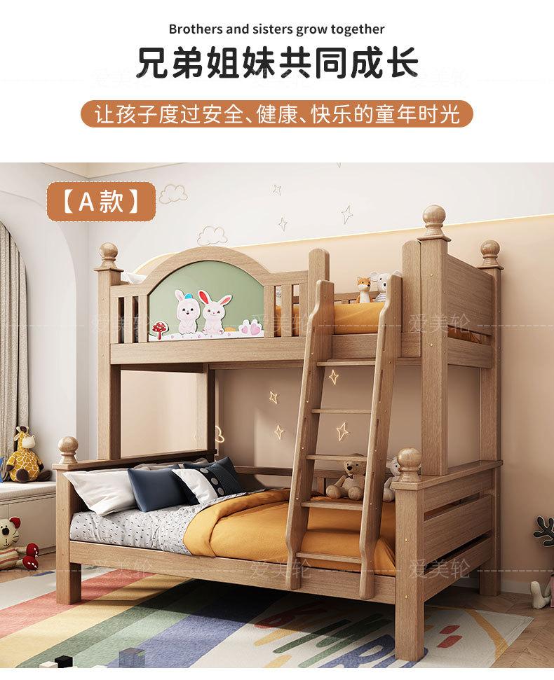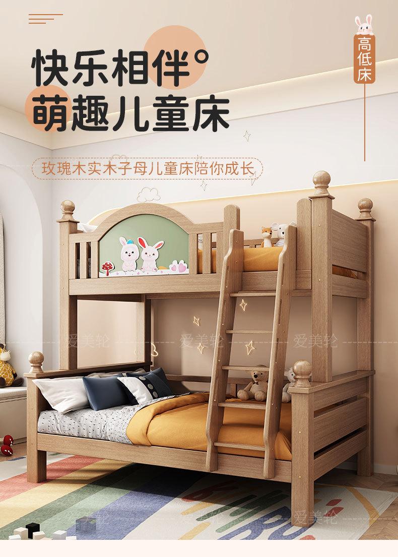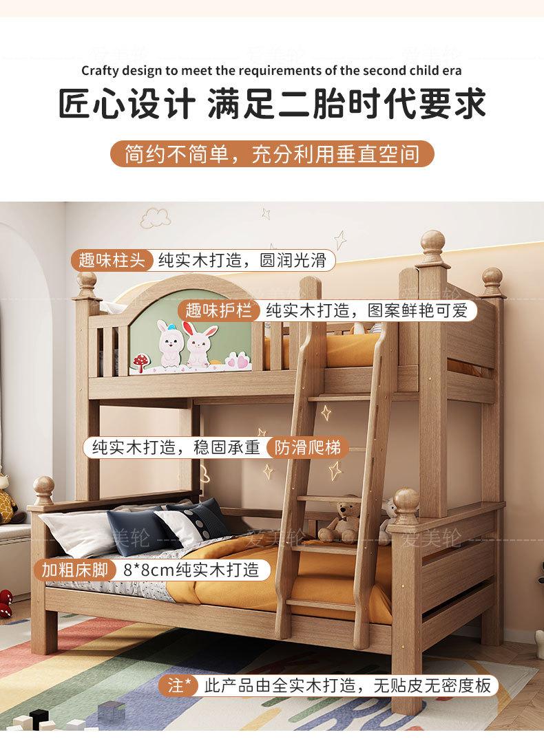 Beliche de Madeira Maciça para Uso Doméstico, Cama Infantil de Camada Dupla, Cama Alta e Baixa para Apartamento Pequeno, Cama de Casal, Beliche de Jacarandá