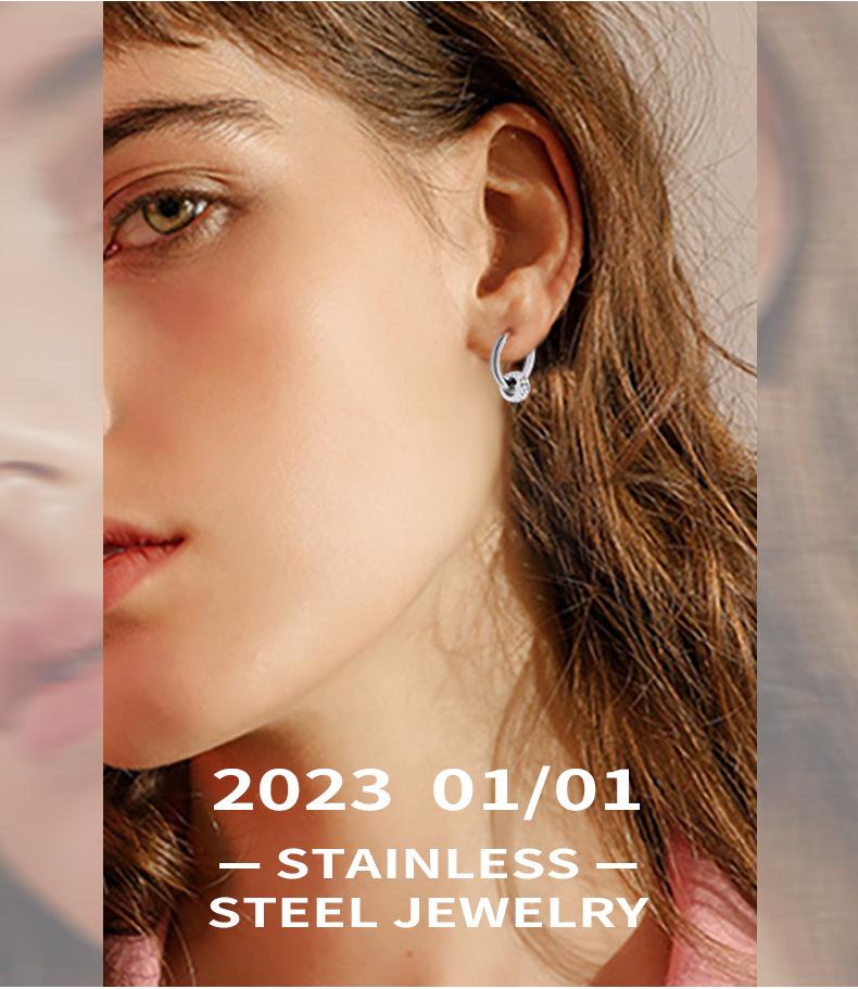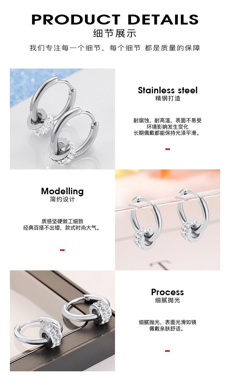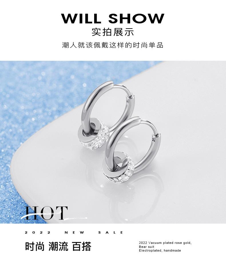 Versão Coreana Brincos Femininos Versáteis de Aço Inoxidável Galvanizado a Vácuo com Design Criativo de Anel Duplo Cravejado de Diamantes Mais Vendidos Estilo Ins