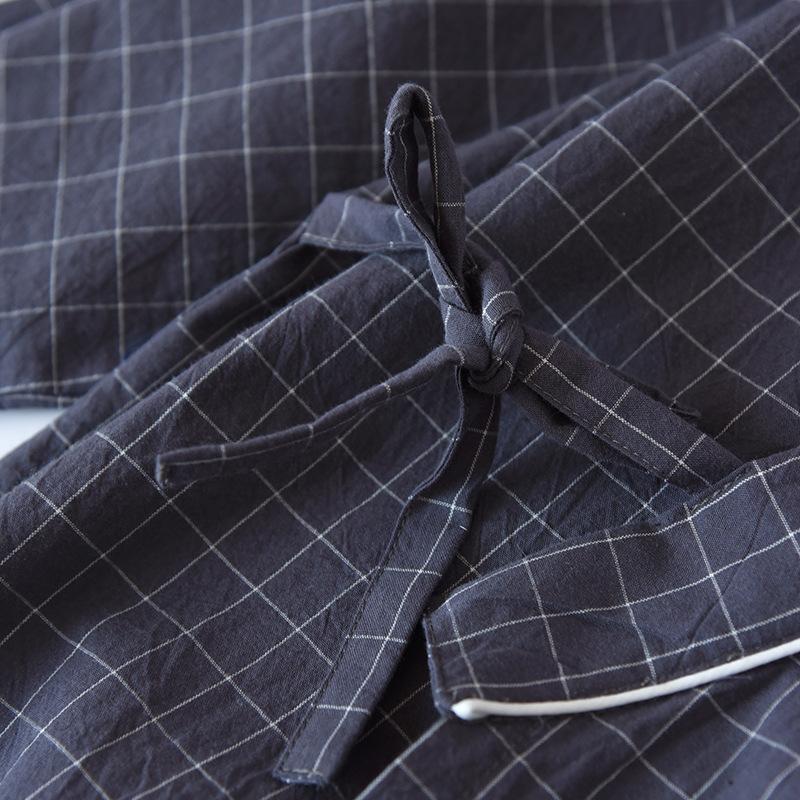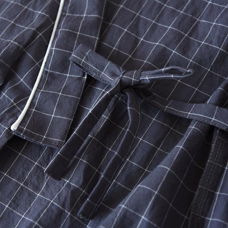 Roupa de Dormir Fina Masculina com Amarração Frontal, Pijama Longo, Roupa de Sauna, Xadrez, Casual, para Casa, Conjunto de Pijama Masculino de Algodão