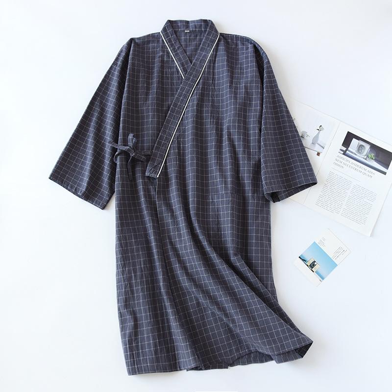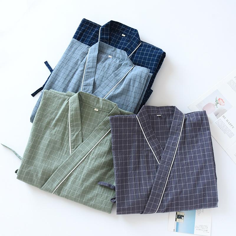 Compre Roupa de Dormir Fina Masculina com Amarração Frontal, Pijama Longo, Roupa de Sauna, Xadrez, Casual, para Casa, Conjunto de Pijama Masculino de Algodão no atacado no Joom.pro