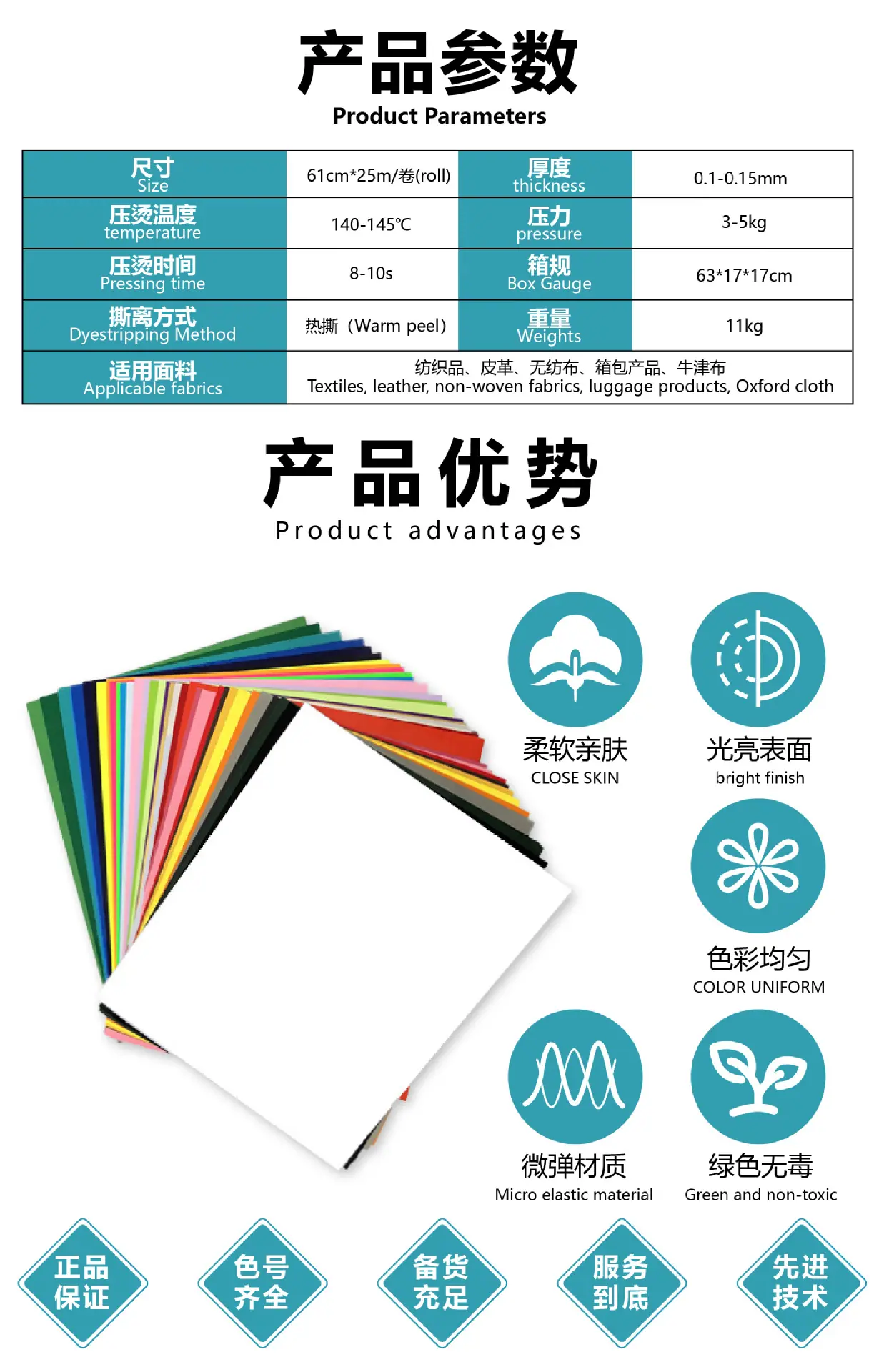 Fatias de Filme de Letras de PVC no Atacado em Estoque, Filme de Impressão por Transferência de Calor Colorido, Suprimentos para DIY de Roupas, Filme de Hot Stamping Brilhante