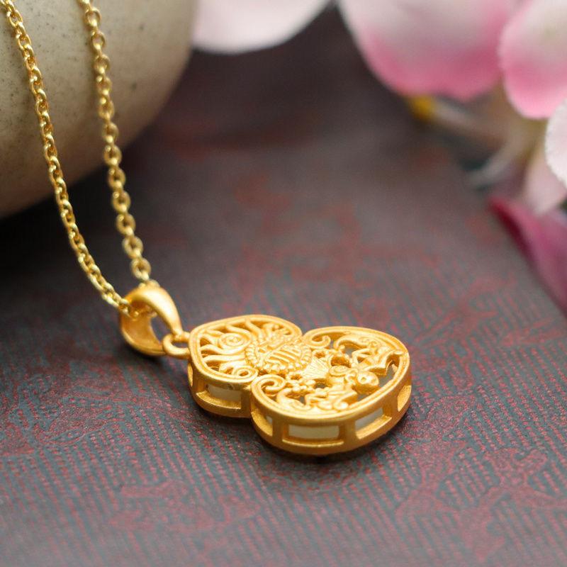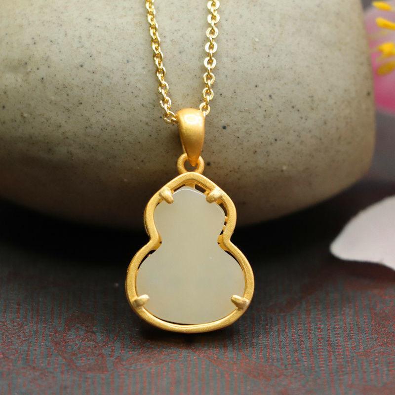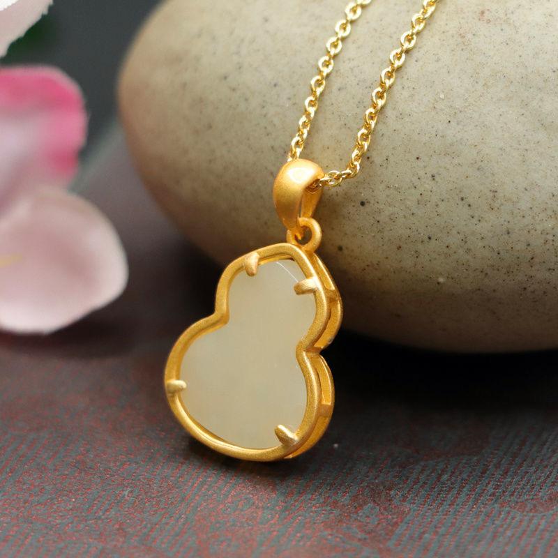 Yaoyu Hetian jade cabaça pingente velho poço plantio jade branco bênção colar jóias jade jade presente para mulheres