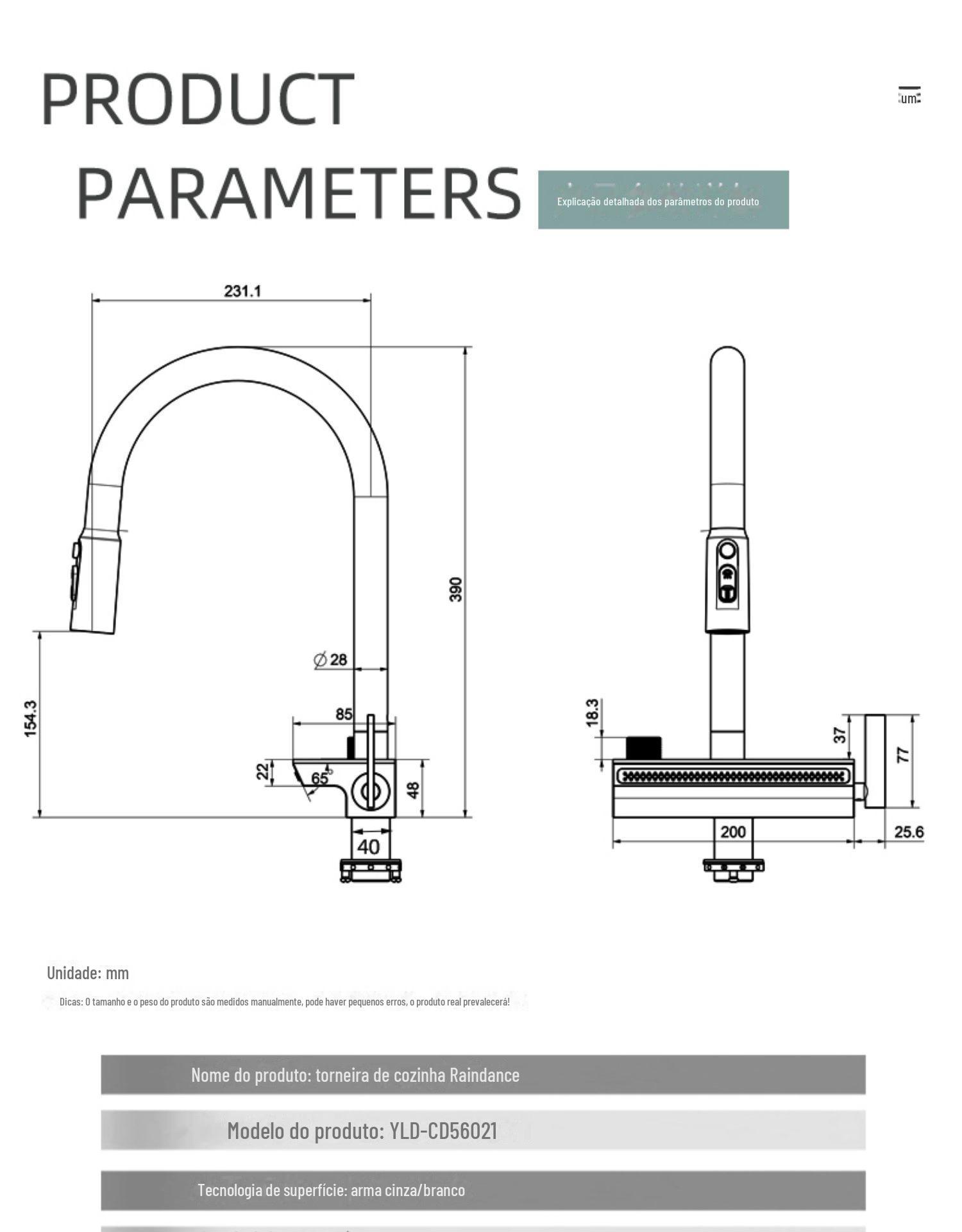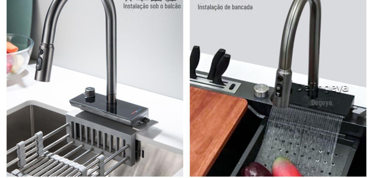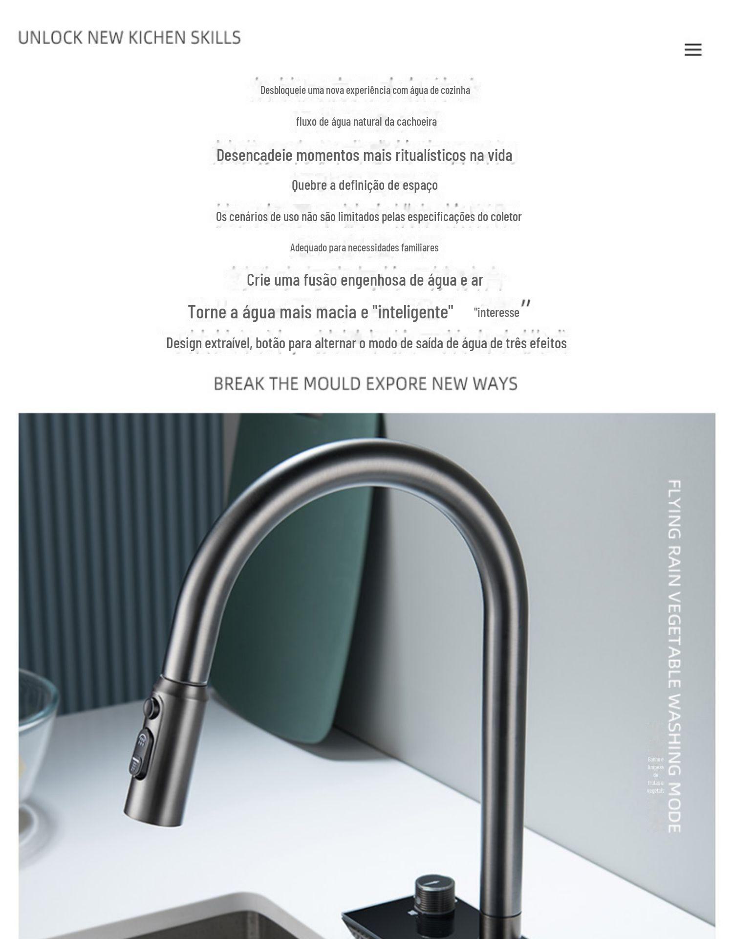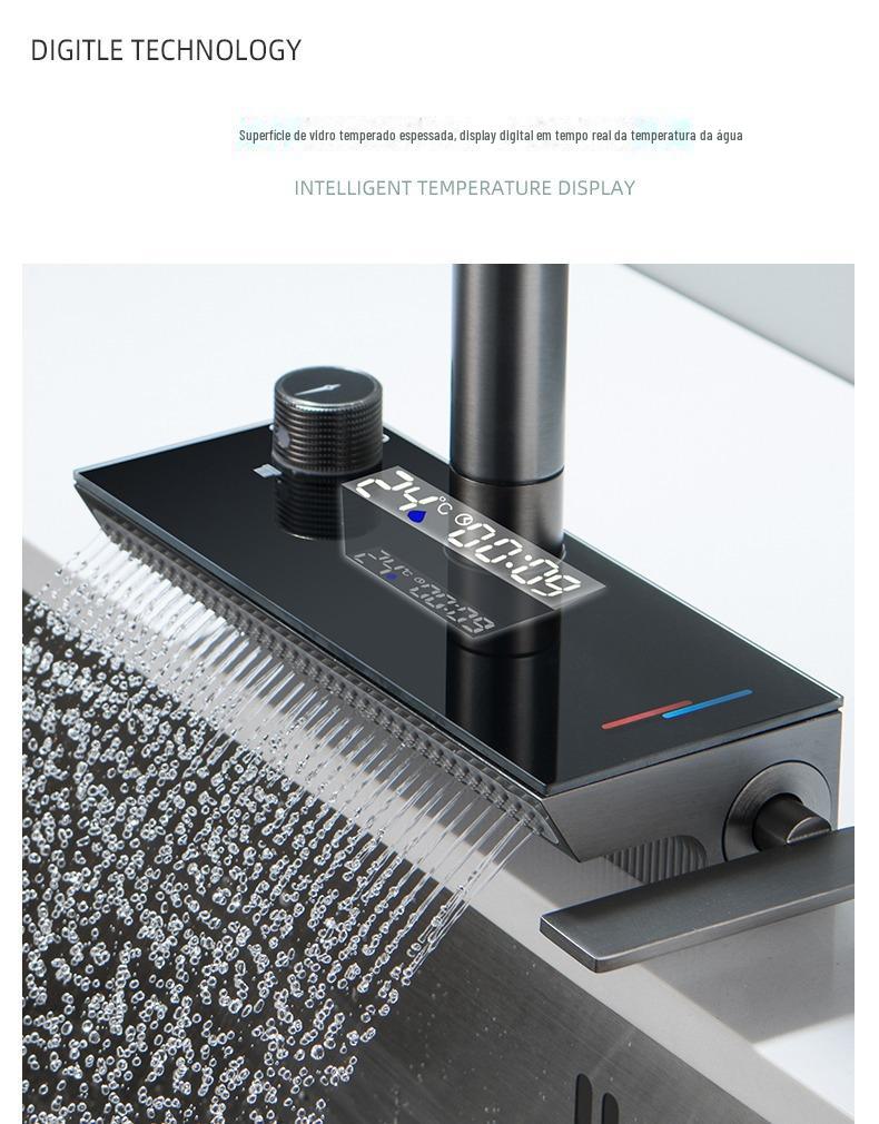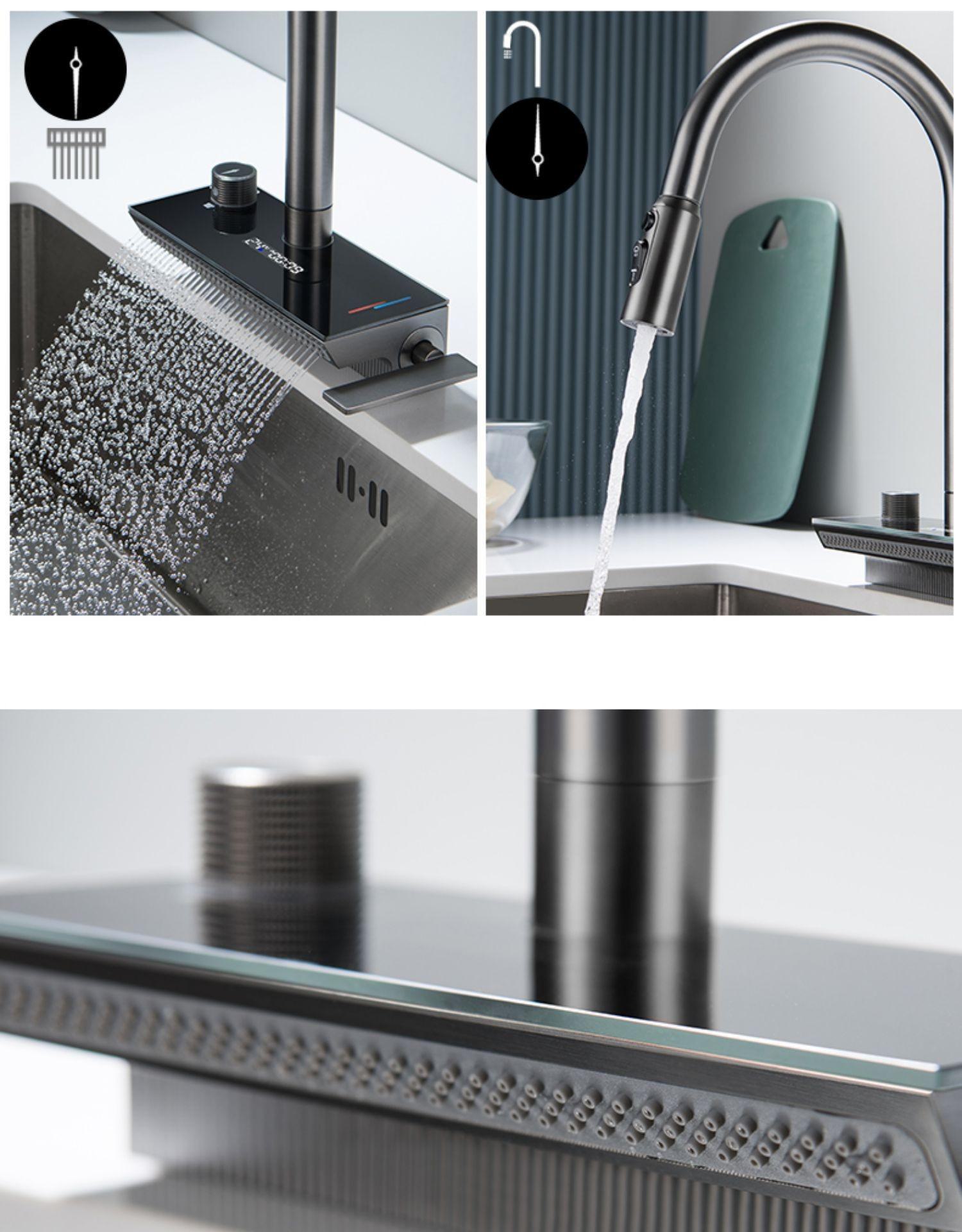 Torneira Cinza Aço Inoxidável 304 Torneira Cachoeira Raindance para Pia Simples Grande Conjunto de Pia de Cozinha