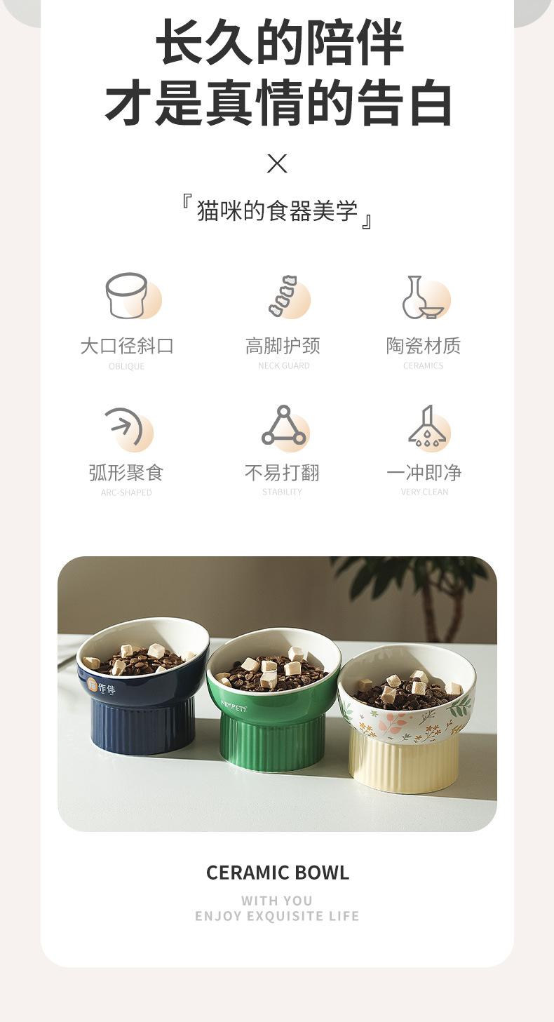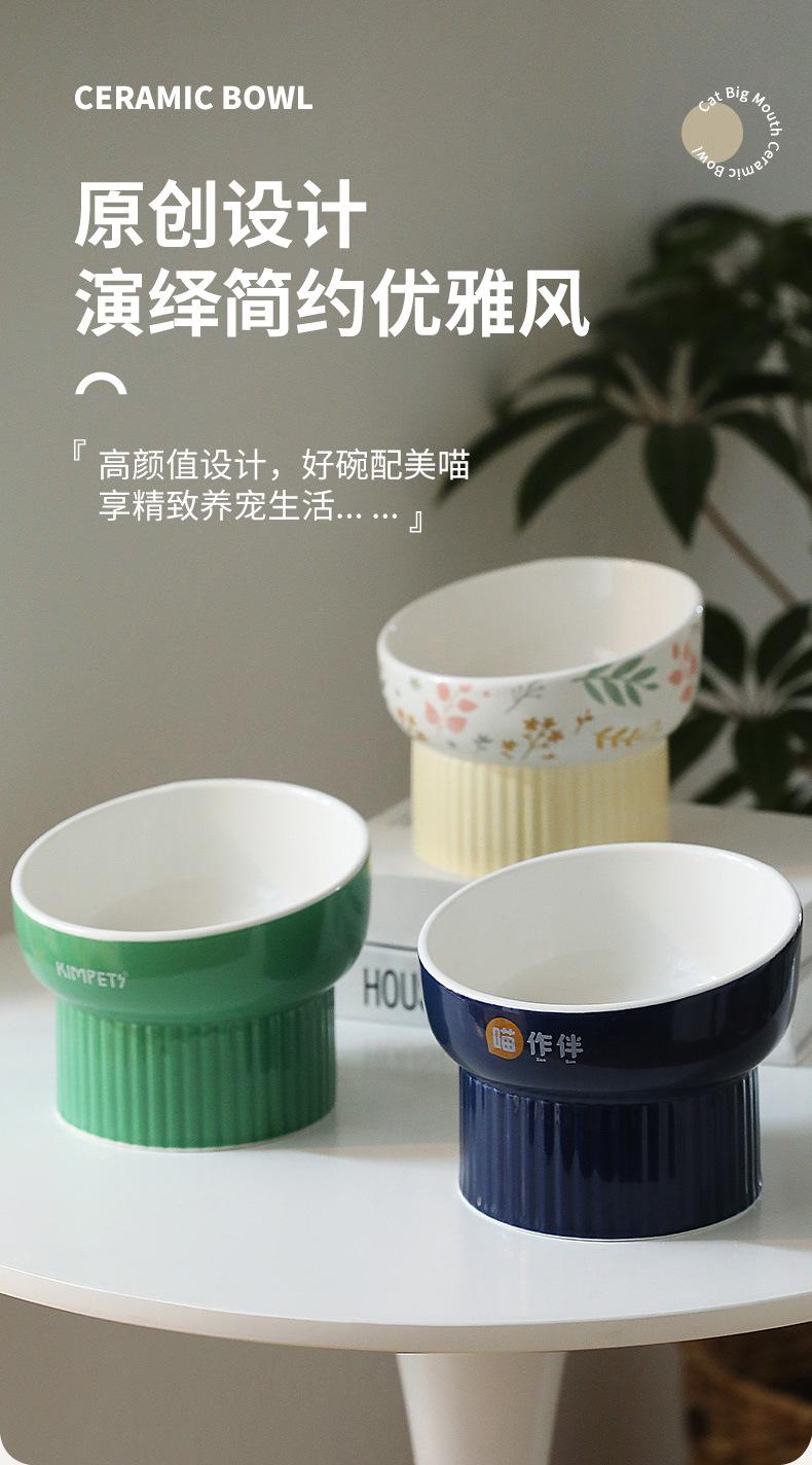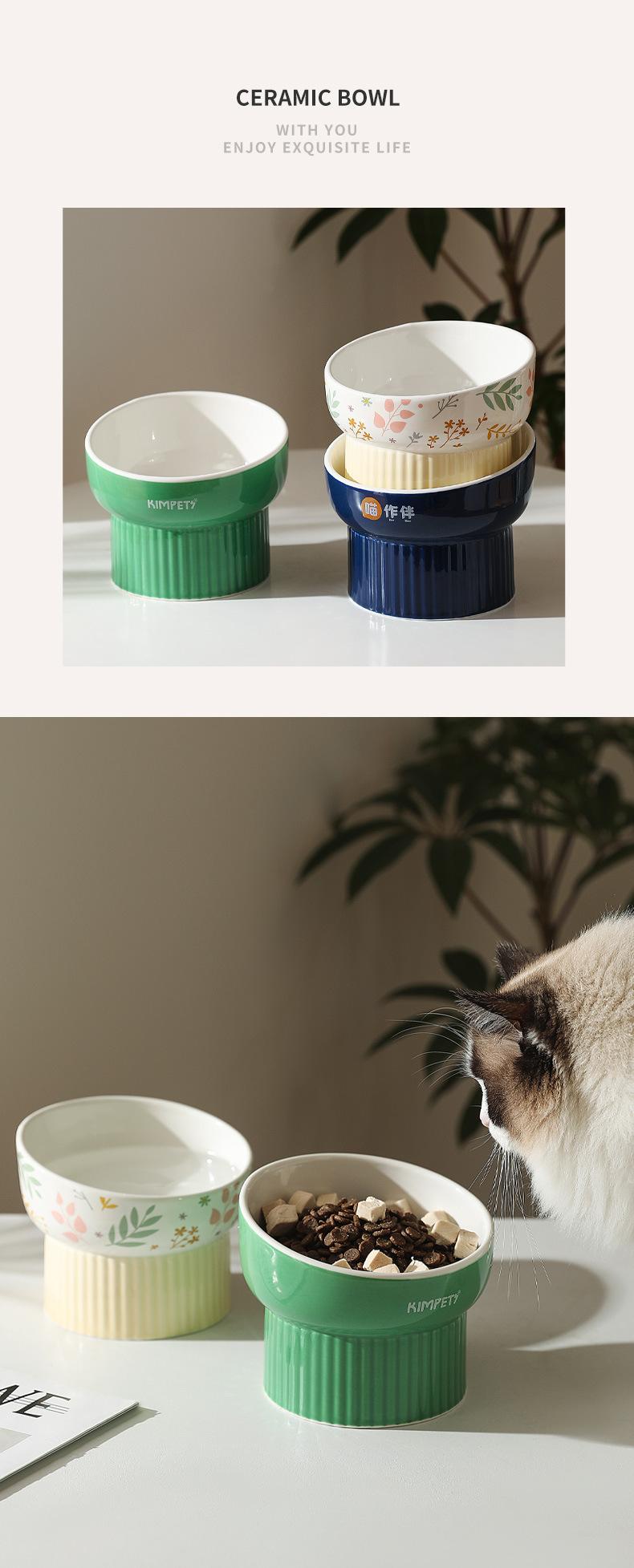 Tigela de Cerâmica para Gato, Tigela Simples Alta para Cão, Tigela para Gato, Tigela para Gato, Boca Inclinada, Protetor de Pescoço, Utensílios para Comida de Animal de Estimação Anti-Tombamento Atacado