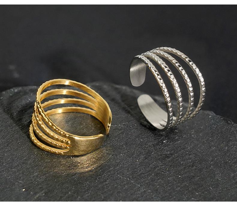 Compre Anel Europeu e Americano Novo Hip Hop padrão irregular aço titânio personalidade moda corrente quatro anéis aço inoxidável anel masculino e feminino no atacado no Joom.pro