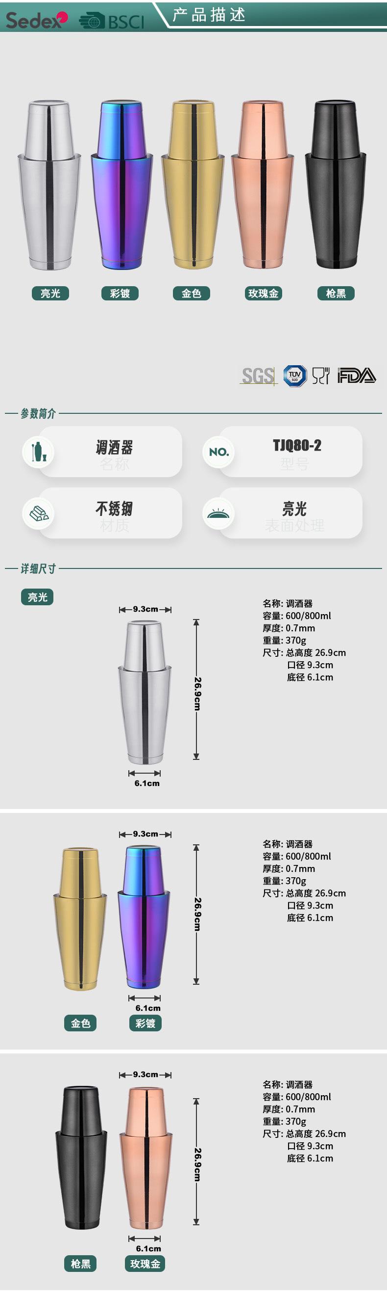 Copo coqueteleira Boston de aço inoxidável 800ml para barman francês, ferramenta para barman