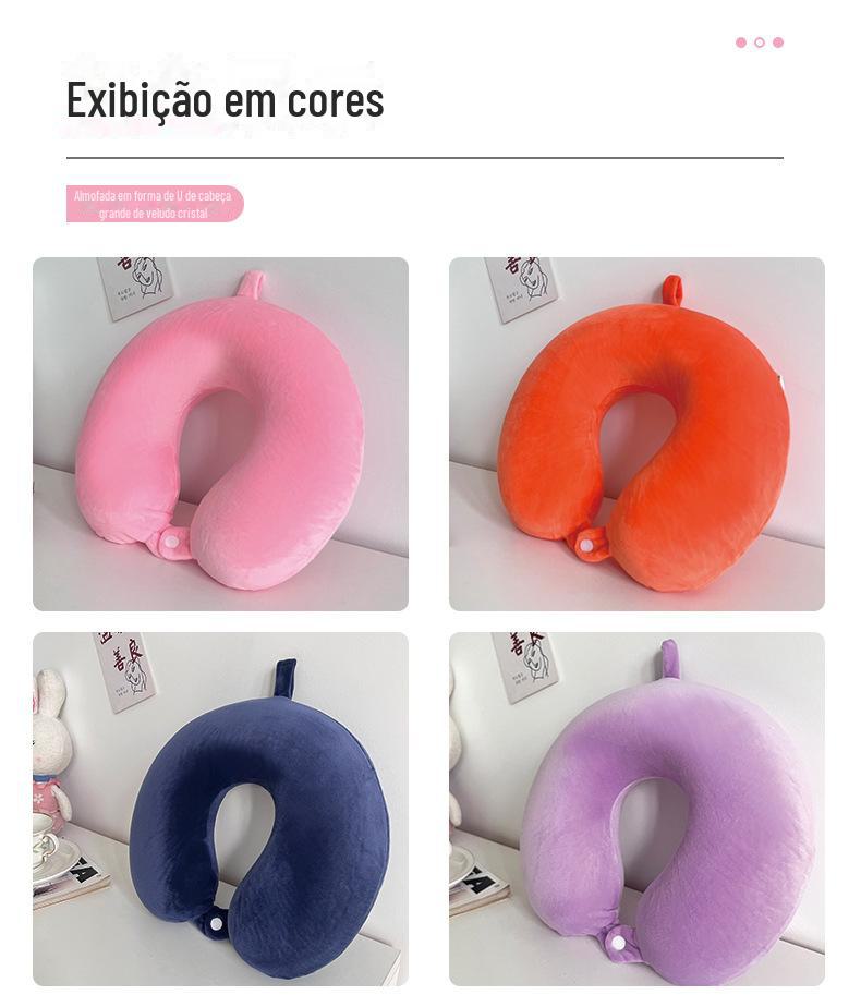 Travesseiro de veludo de cristal de fronteira com fecho em forma de U, travesseiro de algodão com memória, travesseiro de pescoço, presentes de carro, logotipo, fabricantes de cor sólida, atacado