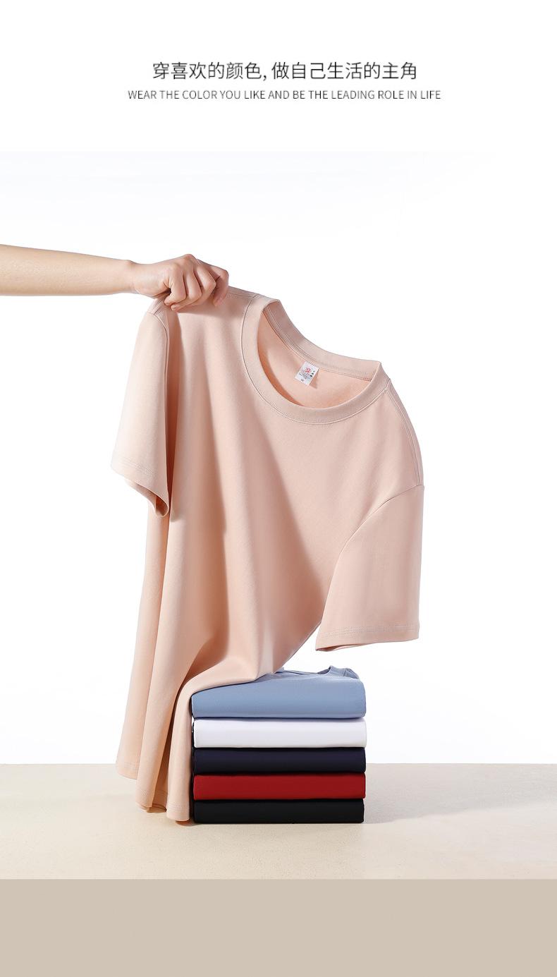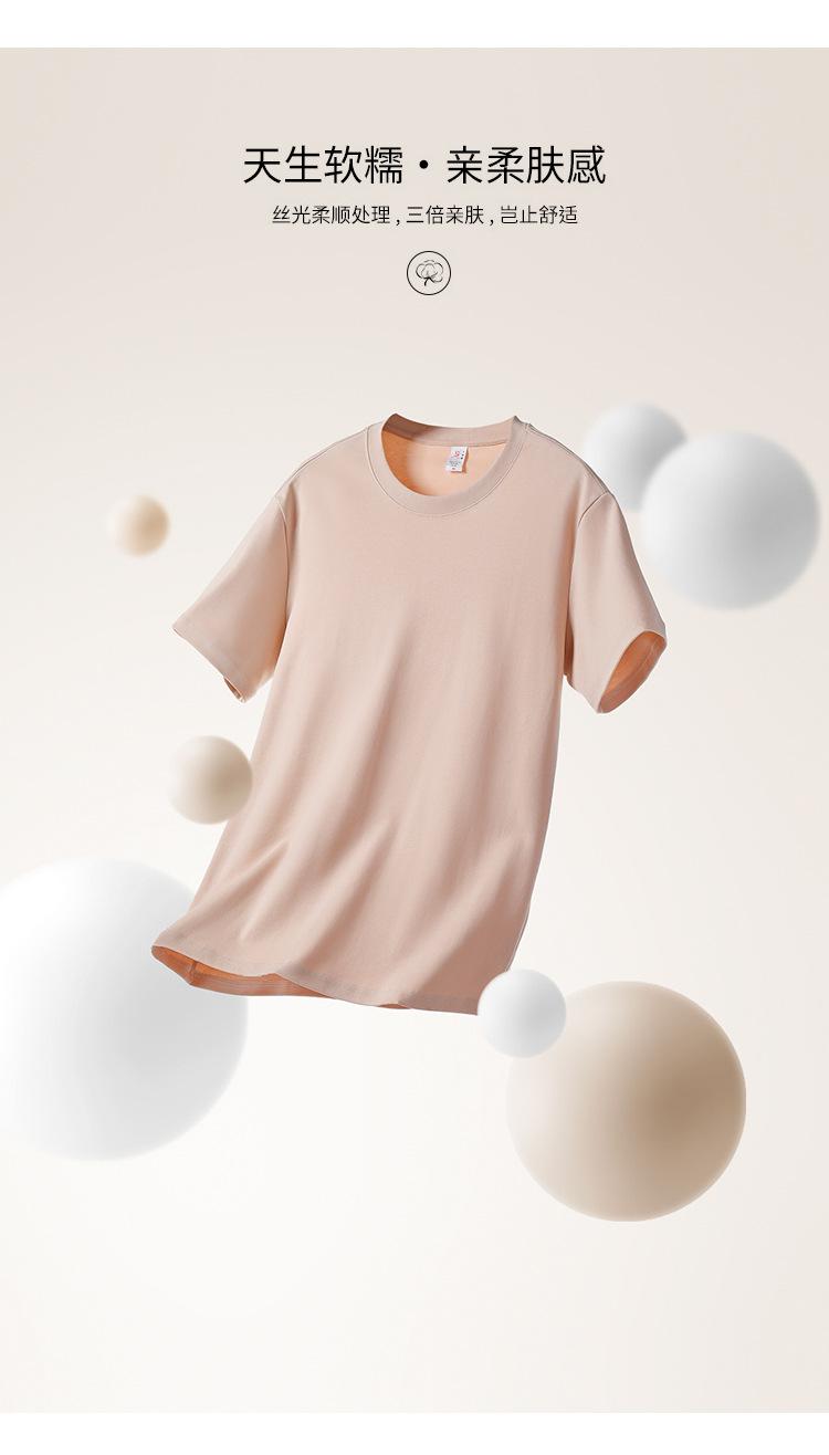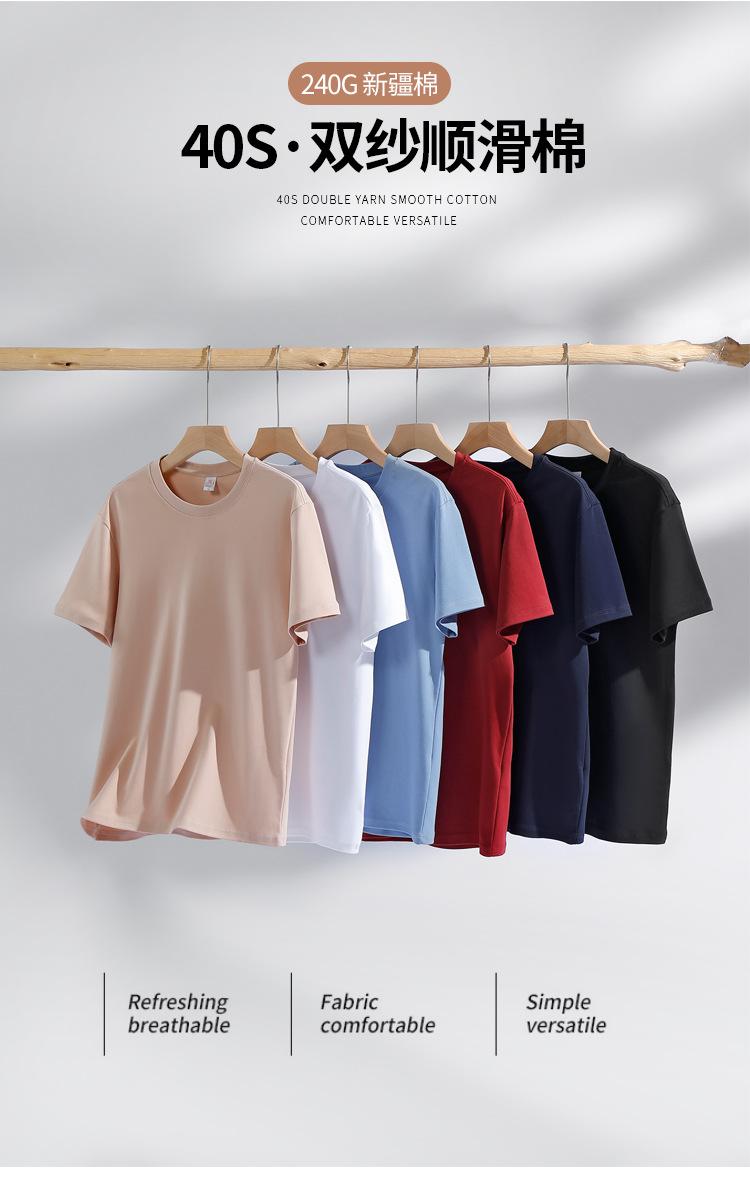 Camisa de algodão mercerizado de fibra longa Xinjiang 240g, cor pura, com gola redonda, camiseta publicitária, logotipo impresso personalizado e bordado