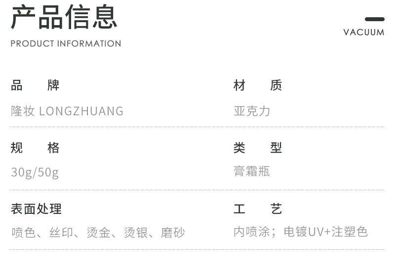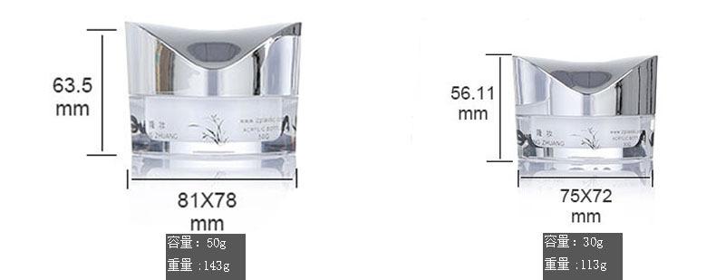 50g; Acrylic; Silver cream bottle, 30g; Acrylic; Silver cream bottle