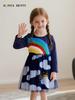Amazon Novo Vestido Infantil Médio e Grande, Costura em Malha, Cintura Florada, Bufante, Princesa, Laço, Sling, Vestido Longo