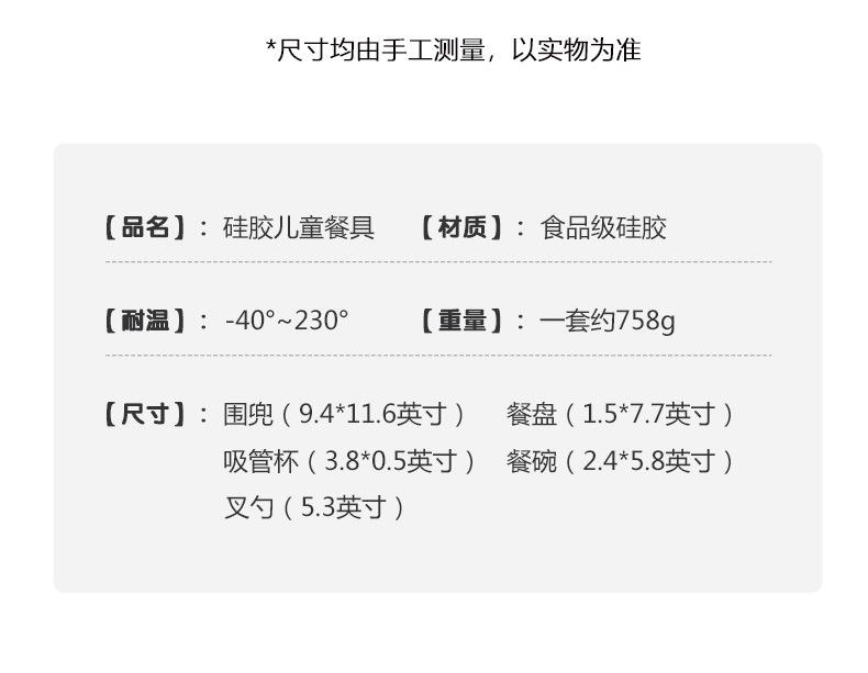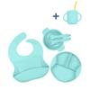 Prato de jantar de silicone com ventosa antiqueda para bebês da Amazon transfronteiriça, tigela de seis peças, garfo, colher, babador, utensílios de mesa para alimentação