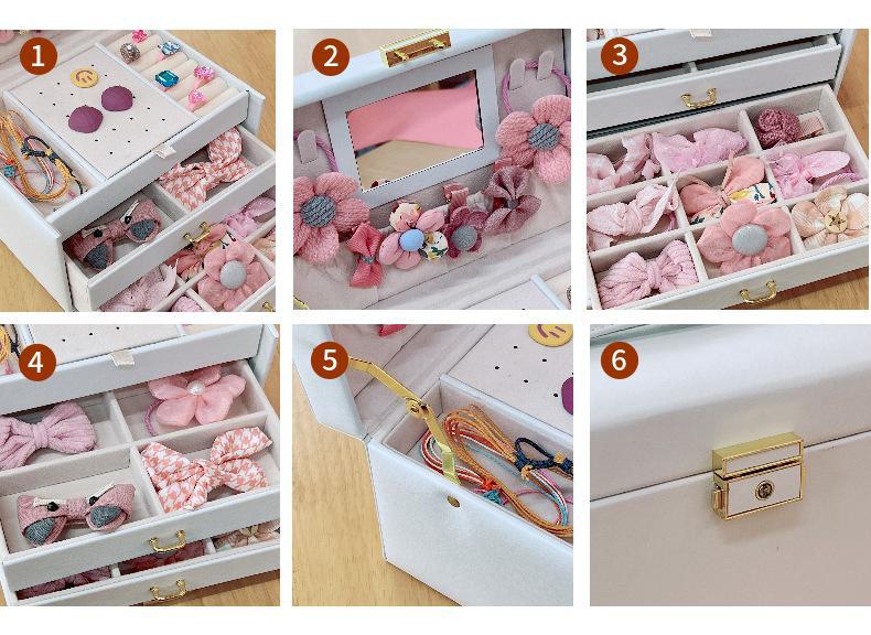 Acessórios de cabelo das crianças caixa de joias presente menina princesa menina joias aniversário hairpin hairpin caixa de armazenamento de borracha