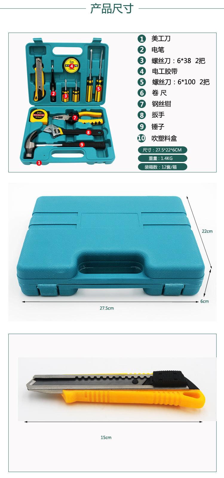 | Pequena caixa de ferramentas combinada de 12 peças, presente publicitário, conjunto de ferramentas portátil, ferramentas de hardware doméstico para carro 8012e |