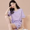 Pijama Feminina Verão Algodão Puro Manga Curta Shorts Fina Verão Casual Estilo Simples Pode Ser Usada Fora Conjunto de Roupa de Casa Esportiva