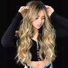 Yiwu fábrica atacado europeu e americano retro amarelo grande onda longo cabelo cacheado transfronteiriço quente vendendo mulheres de comprimento médio cabelo longo