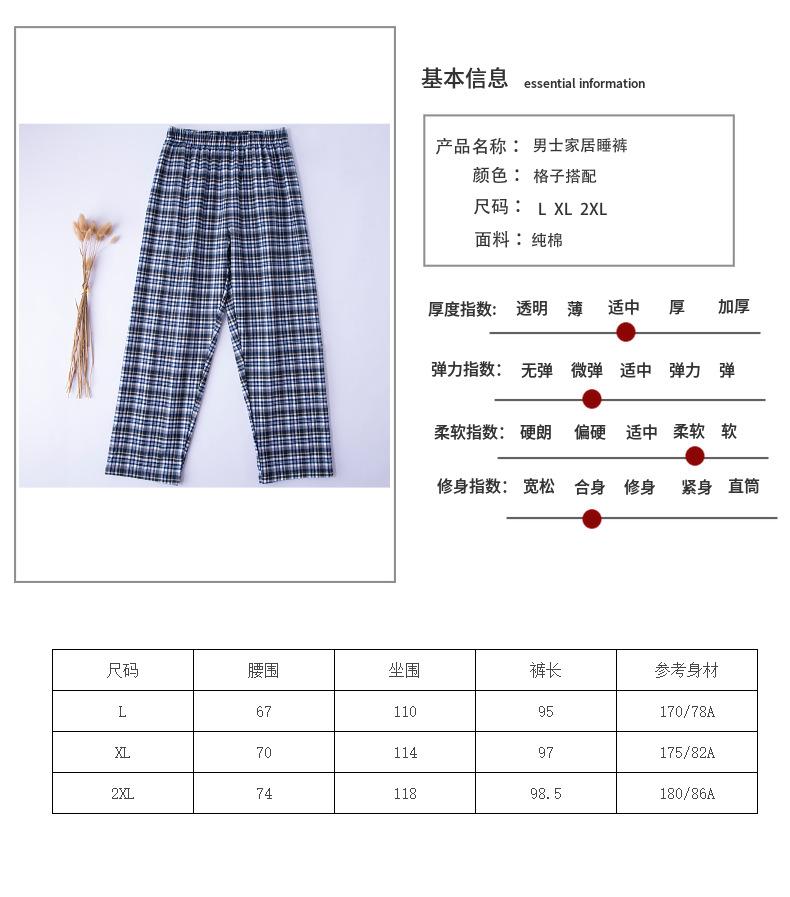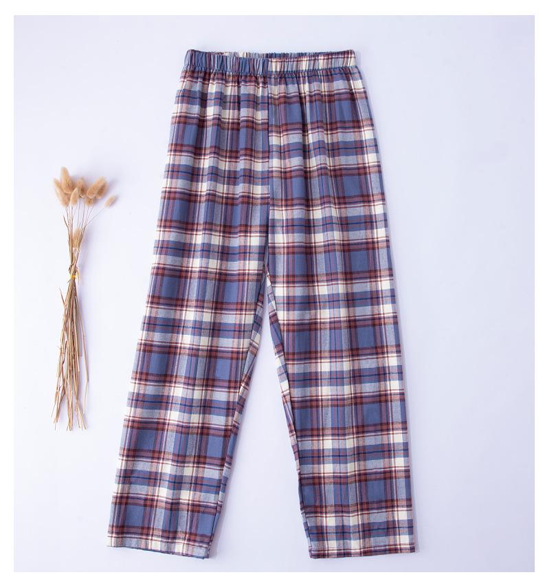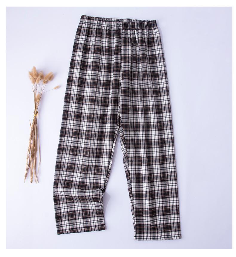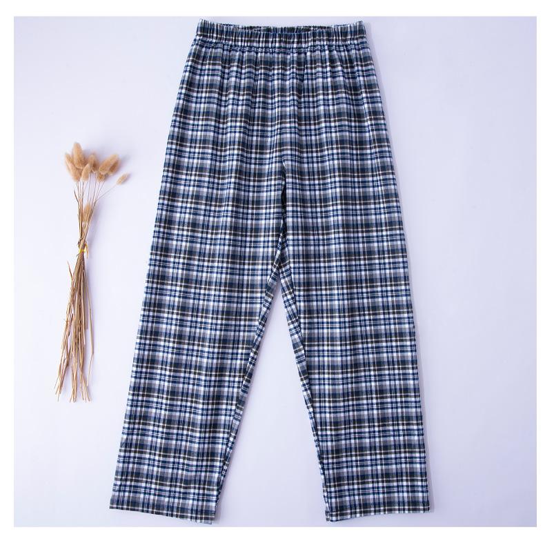 Calças de Pijama Masculinas de Algodão Xadrez Calças de Algodão e Linho Masculinas Soltas e Confortáveis para Casa Peça Única Drop Shipping Respirável