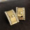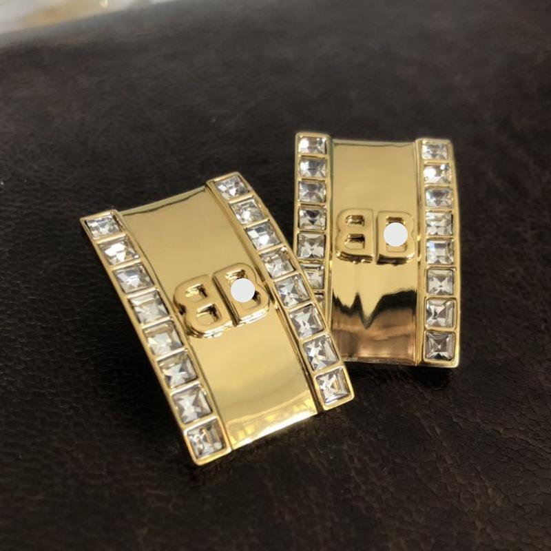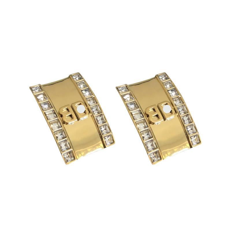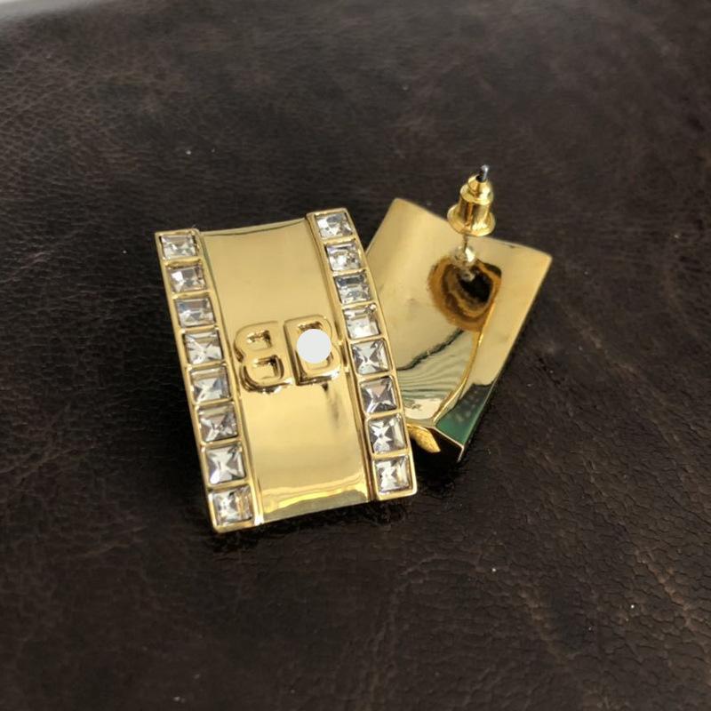 Novos brincos de primavera e verão da B's, estilo europeu e americano, simples, elegantes, quadrados, de metal, banhados a ouro, micro brincos de zircônia incrustada para mulheres