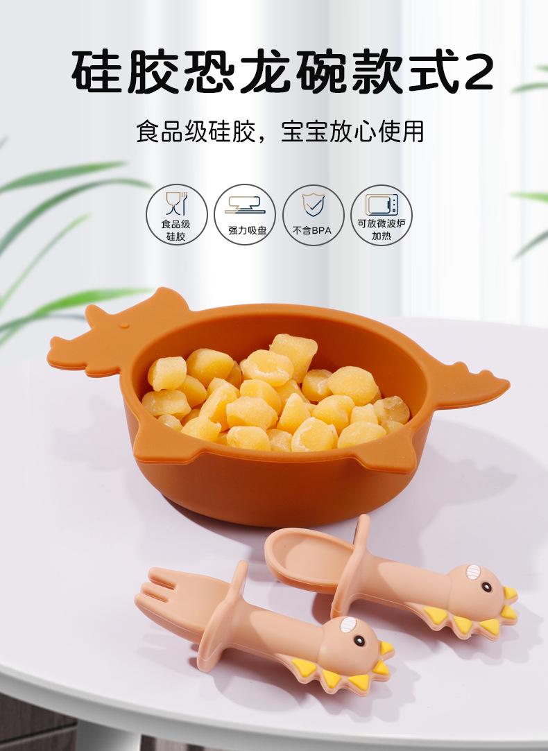 Criativo desenho animado dinossauro forma bebê talheres silicone suplemento alimentar tigela auto-comer anti-escaldante crianças silicone tigela casa