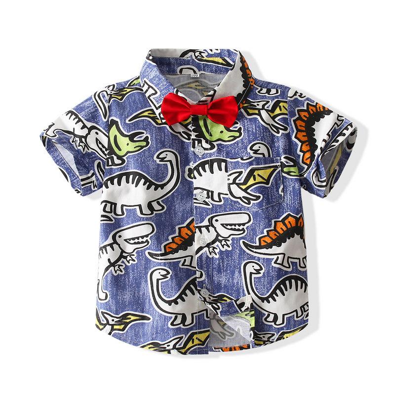 Compre Meninos Gentleman's Casual Suit 2024 Verão Novo Estilo Europeu e Americano Camisa de dinossauro dos desenhos animados das crianças com terno Strappage Calças no atacado no Joom.pro