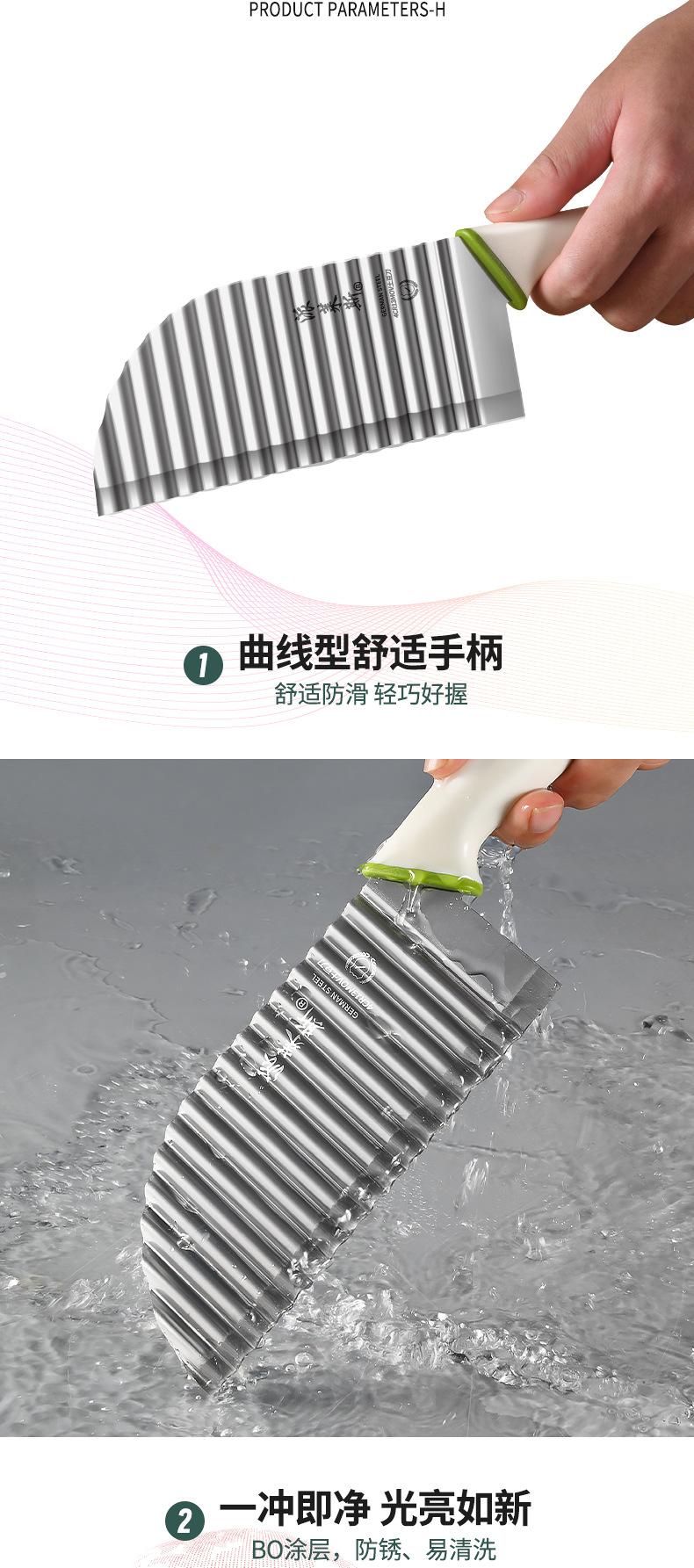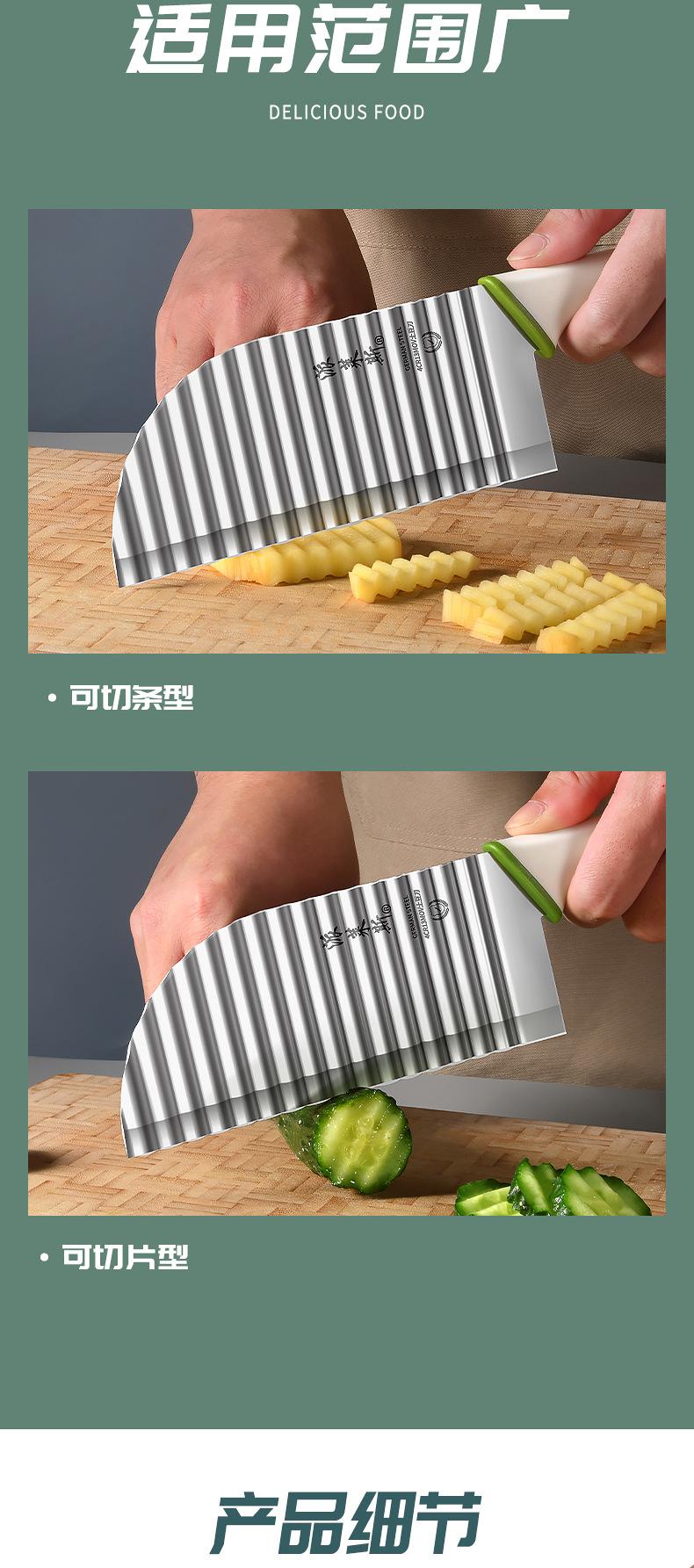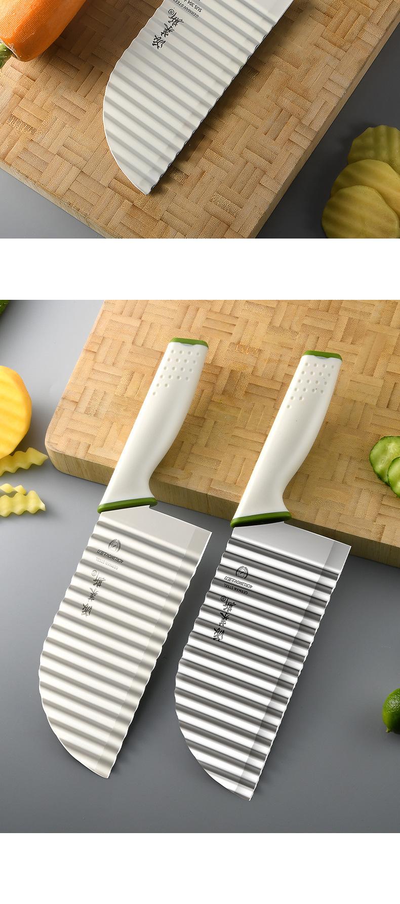 Varejo 304 Faca de batata com espiga Faca de batata frita Faca de onda afiada Artefato de corte de vegetais multifuncional doméstico Cozinha desfiada
