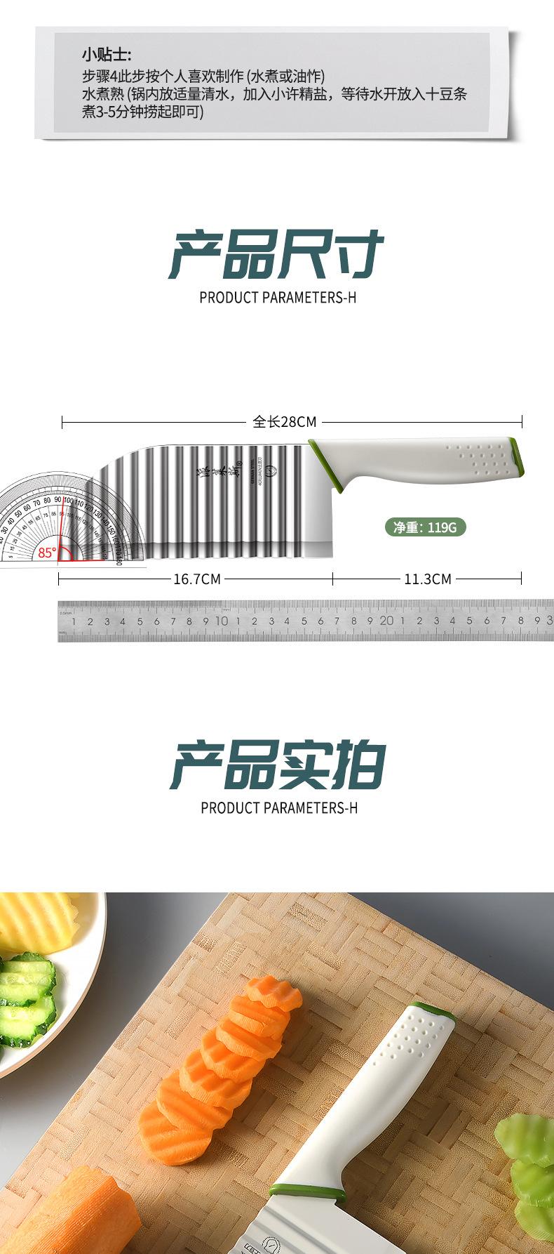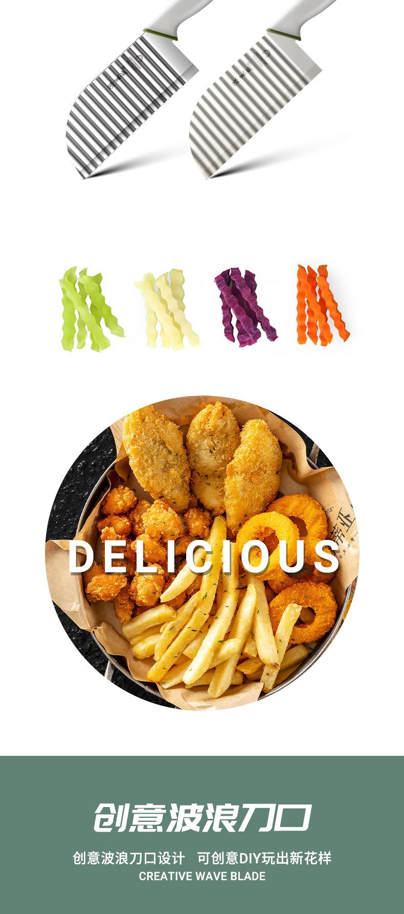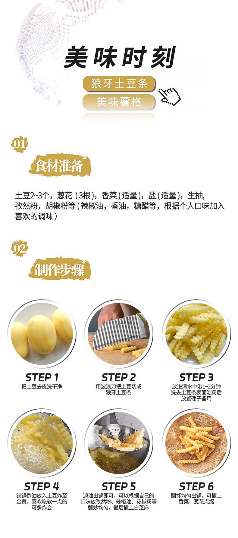 Varejo 304 Faca de batata com espiga Faca de batata frita Faca de onda afiada Artefato de corte de vegetais multifuncional doméstico Cozinha desfiada