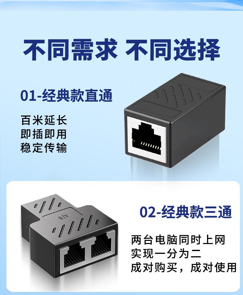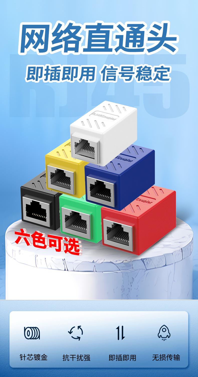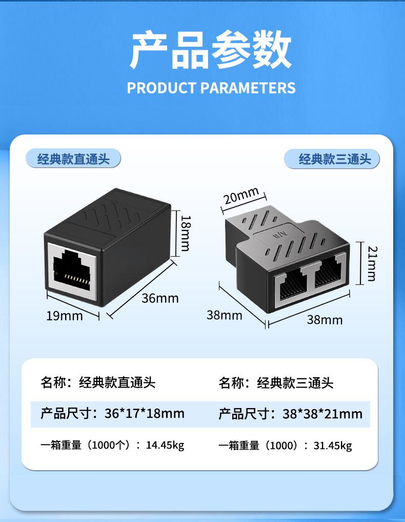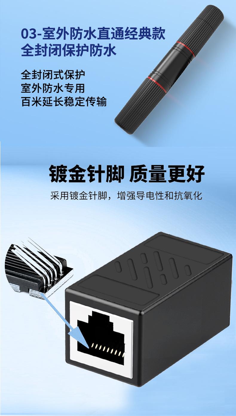 Conector de cabo de rede de cabeça reta RJ45 Conector divisor de cabo de rede 8P8C Extensor de cabeça de cristal