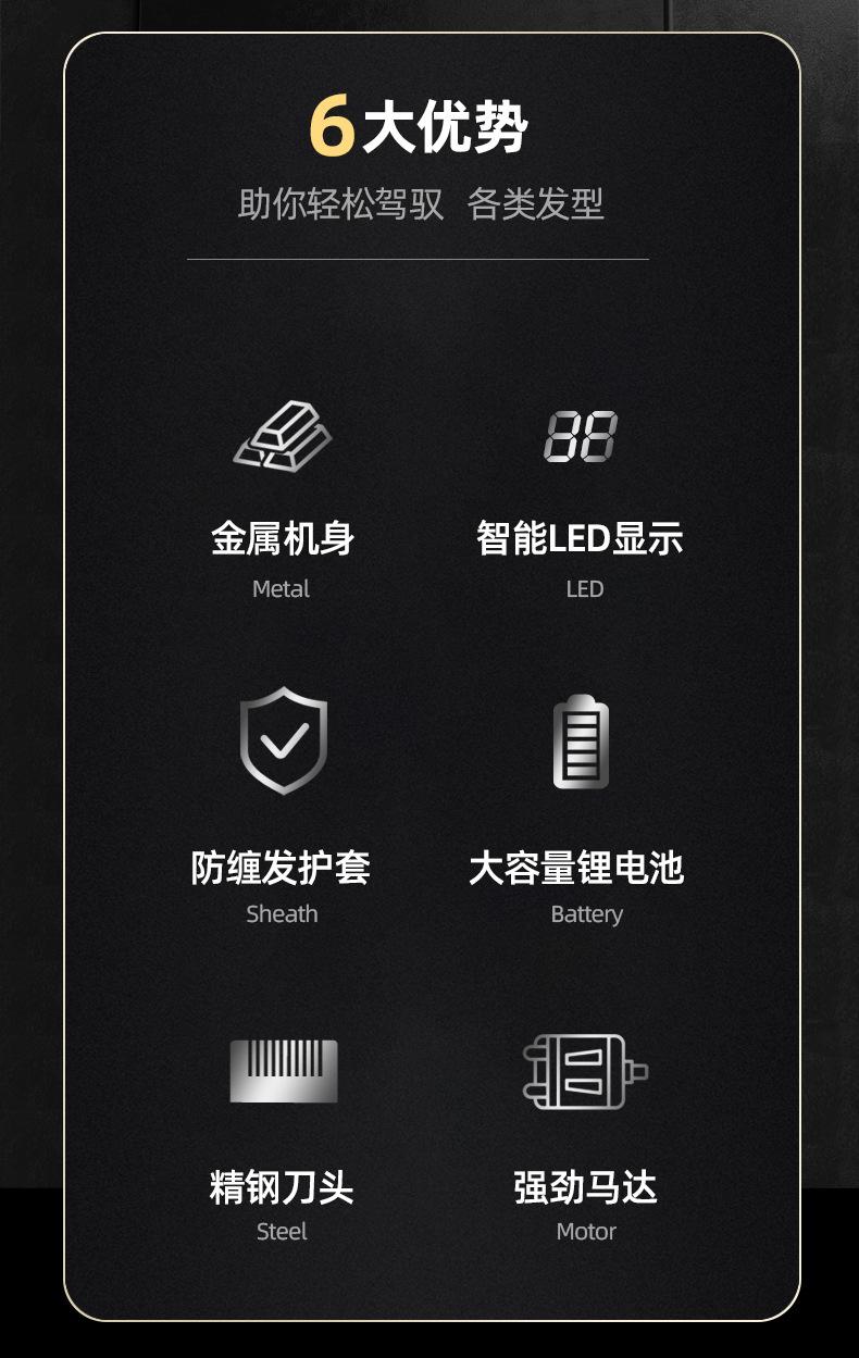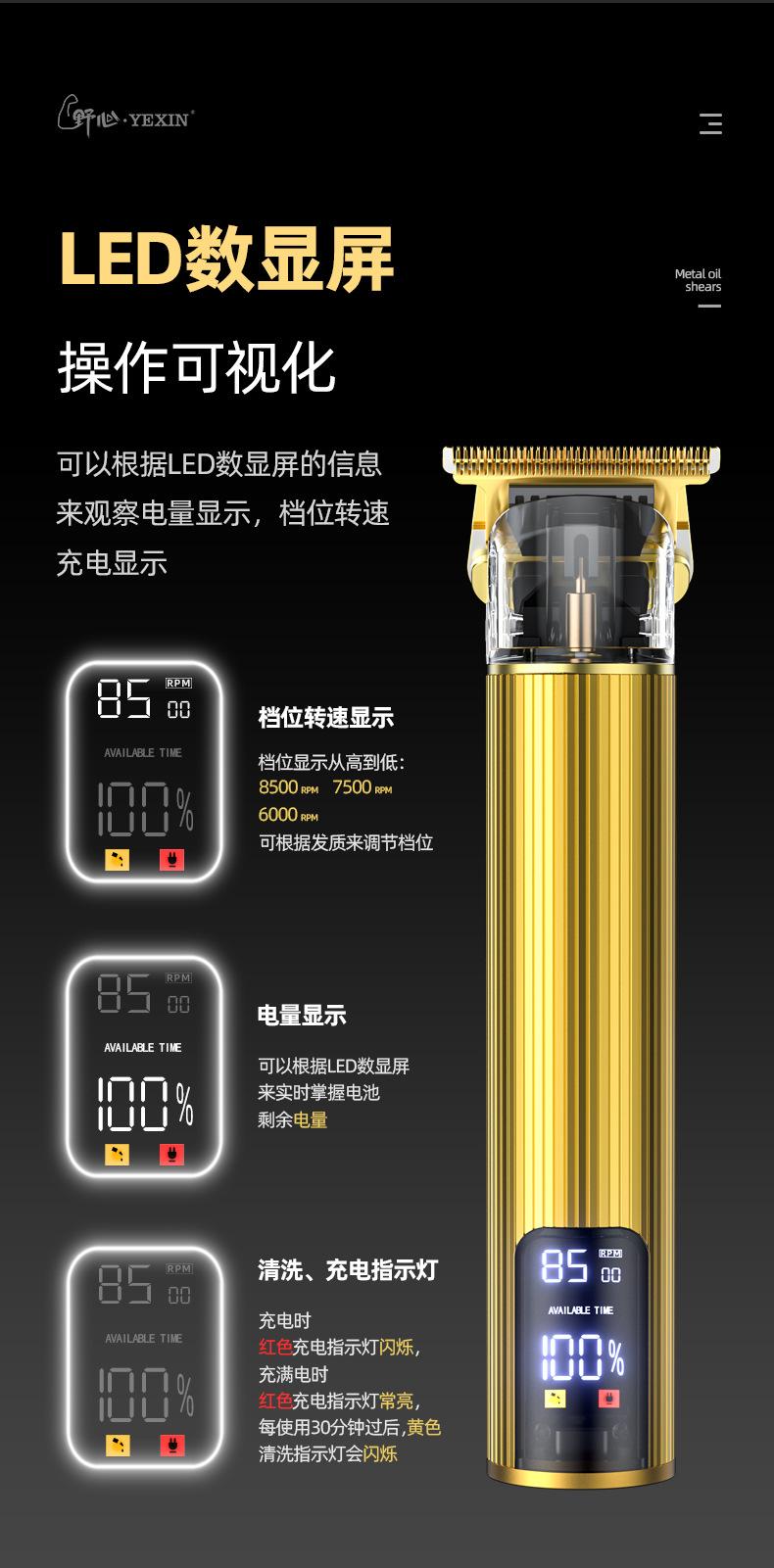 Máquina de Cortar Cabelo T9 com Visor Digital para Penteados Penteados para Trás, Aparador de Cabelo Elétrico com Tela Grande, Design Silencioso